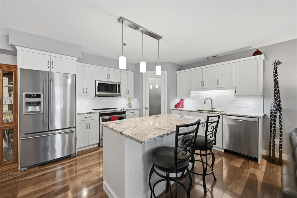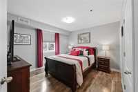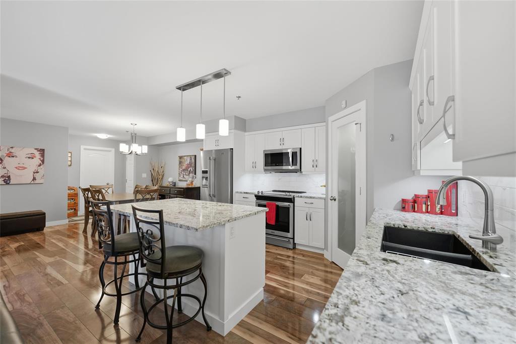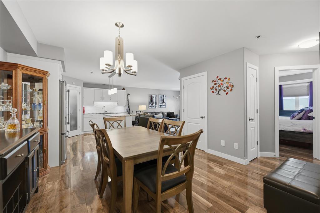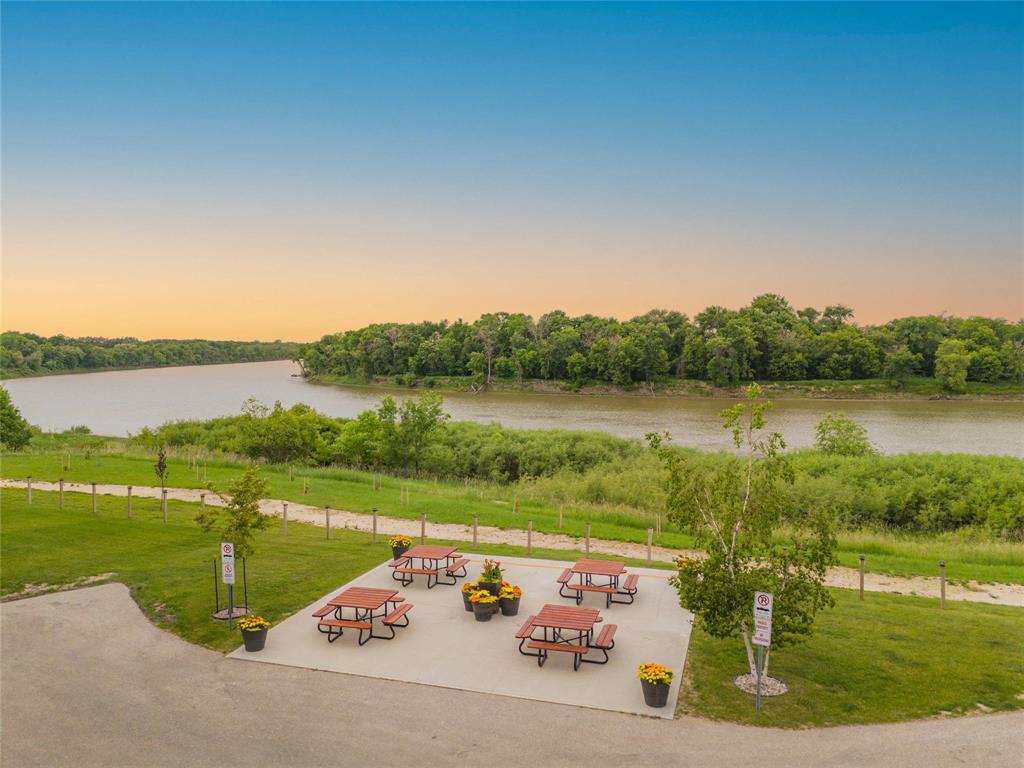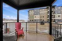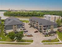 West exposure views of green space and the Red River from your balcony in this affordable condo. Luxury finishing with high end white cabinetry, island with pot drawers, granite counters, tile backsplash, Silgranite undermount sink, corner pantry, under cabinet plus pendant lighting. High quality laminate flooring thru most of the suite and Italian porcelain tile in both bathrooms and in suite laundry. Proper dining area in this floor plan. Primary bedroom with walk in closet and 3 piece ensuite. Shows like new. Central air, central vacuum with attachments included. This unit comes with 1 underground parking stall. Storage locker is just down the hall from the suite. Superior common room with full kitchen, guest suite in the building to reserve. Walking trail on the river plus a 3 minute walk to Henteleff Park. Transit and shopping near by. Central elevator. 2 pets allowed under 33lbs each. Potential option for 2nd outdoor parking stall to rent.