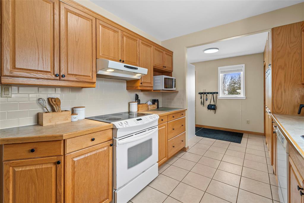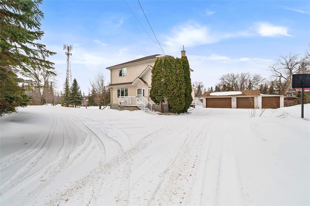 SS Tuesday- March 24, 2026. Offers as received!! Open house Sunday, 29th 02:00PM-04:00PM! Welcome to this spacious and well-maintained 2-storey home offering 1,600 sq ft of comfortable living space, perfectly situated on a private, treed 1.29-acre lot. Step inside to a bright and airy living room/dining room combination. The home features a functional galley-style eat-in kitchen with oak cabinetry, under mount task lighting, ample storage, and a cozy breakfast nook for everyday dining. A convenient 2-piece bathroom with laundry completes the main floor. Upstairs, you’ll find a spacious primary bedroom with a 3-piece ensuite, along with two generously sized bedrooms and a full 4-piece bathroom. The lower level offers additional space and storage with room for future development. Outside, enjoy a 4-car detached garage, an additional single detached garage/shed, and a patio block driveway providing ample parking. With low-maintenance windows, shingles (2018), and a mix of parquet, hardwood, and tile flooring, this home is move-in ready. Surrounded by mature trees, the property offers privacy and tranquility.
