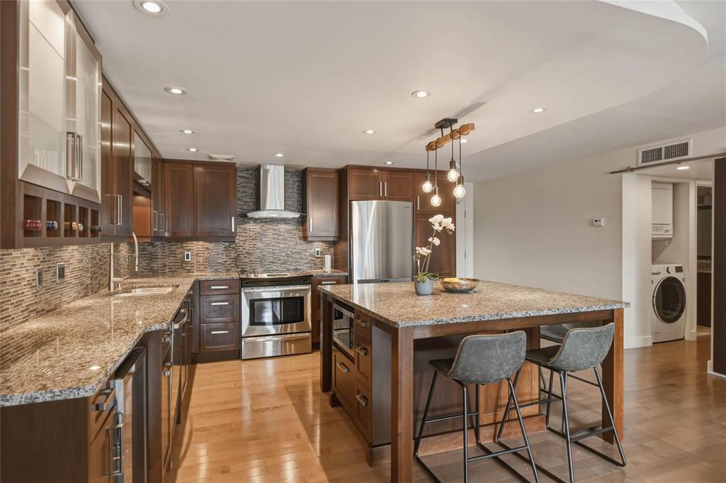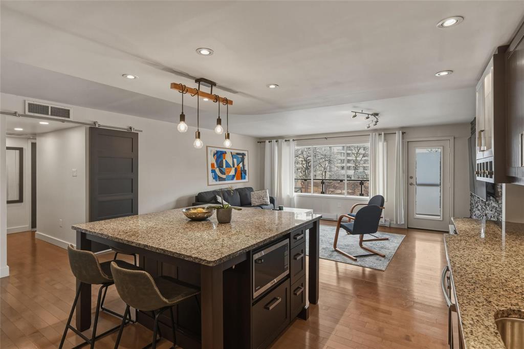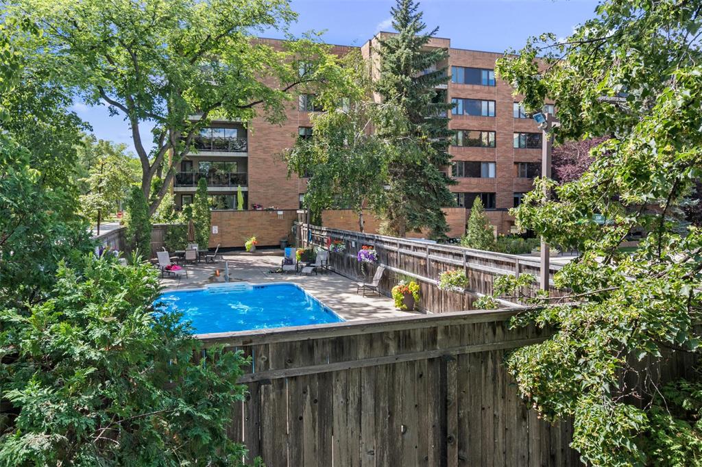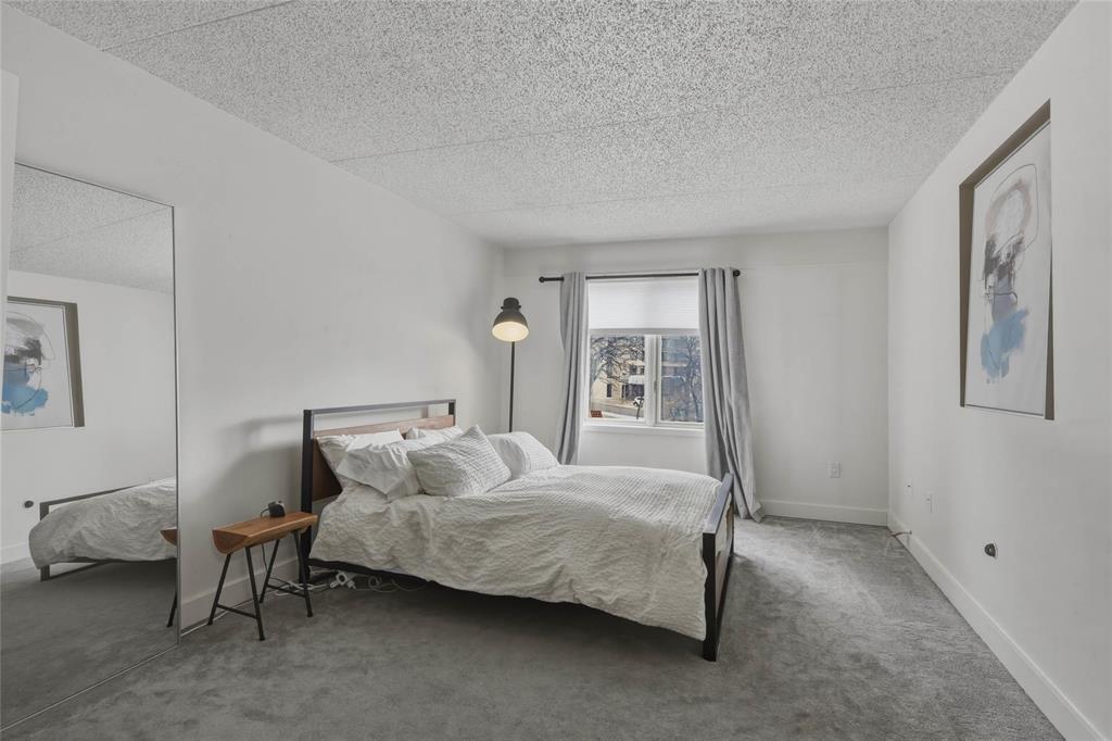 Showings begin March 26. Offers as received. Nestled in the heart of Crescentwood—one of Winnipeg’s most picturesque neighbourhoods—this beautifully remodelled 2-bedroom, 2-bath condo is located in a highly desirable, well-managed building. The open gourmet kitchen features stainless steel appliances, including a bar fridge & microwave, & an enormous island with 9 bar stools—perfect for entertaining. The suite offers engineered flooring throughout, with newer carpeting in the bedrooms, a custom walk-in closet, and convenient in-suite laundry with a newer LG front-loading washer. Microwave, custom mounted 75 inch Samsung TV included. Enjoy your spacious private balcony overlooking the Crescent, along with excellent in-suite storage. Building amenities include underground parking, ( best spot in the building), outdoor pool, on-site superintendent, & internet included in the low condo fees. Pet-friendly (size restriction) and a non-smoking building. The location truly can’t be beat—surrounded by beautiful walking routes and just steps from all amenities.