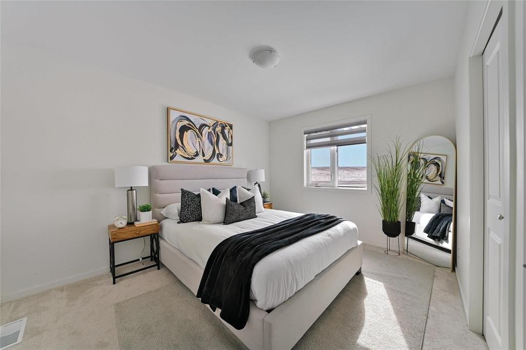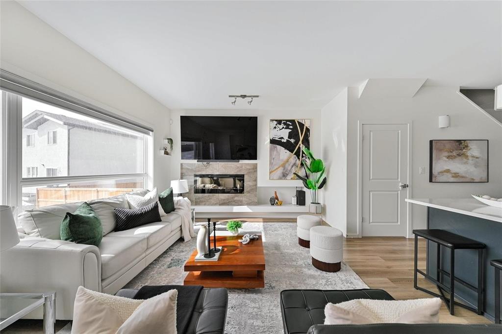 Showing starts, Offer as Received. Welcome to this exquisite 1,496 SF two-storey residence with a finished basement, thoughtfully crafted and located in the Prairie Pointe community. Offering 4 spacious bedrooms, 3 full bathrooms, and a powder room, this home showcases premium finishes throughout and a modern, elegant design. The open-concept main floor is bathed in natural light and perfectly suited for both refined entertaining and everyday living. Upstairs, retreat to generous bedrooms, including a serene primary suite. The finished basement provides a kitchennette, full bath, and side door basement entry. Complete with a double-attached garage and situated in a growing, Cu De Sac family-friendly neighbourhood close to parks, schools, and amenities, this move-in-ready home delivers comfort, style, and exceptional value. Upgraded features include Living room speakers, Cameras, Alarm Monitoring System. This is the home of choice.