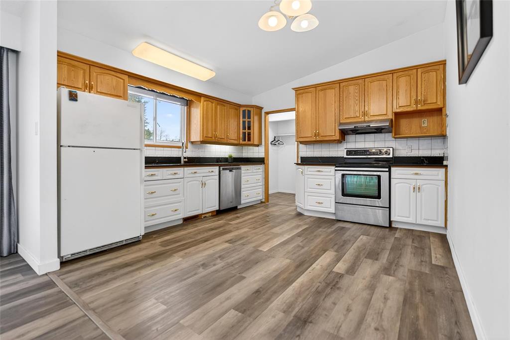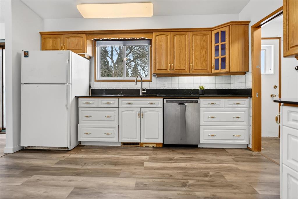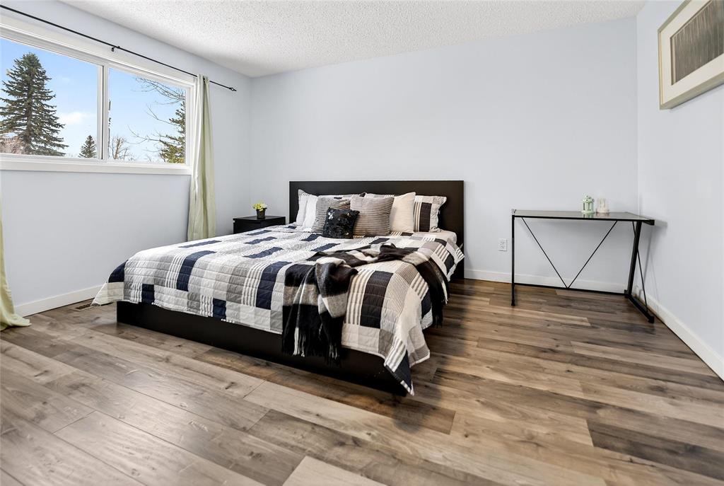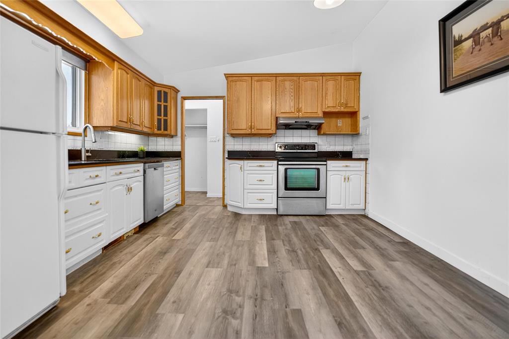 SS Now! Offers as received. Welcome to this solid and well-maintained home in the highly convenient Fort Richmond! This spacious 4-level split offers 4 bedrooms, 2.5 bathrooms, and abundant storage throughout. The main floor features soaring vaulted ceilings and a bright, inviting living room filled with natural light from large front windows. The huge eat-in kitchen is perfect for families, offering ample cabinetry, quartz countertops, and direct access to the backyard through solid oak-framed patio doors leading to a deck/patio—ideal for outdoor enjoyment. The lower level boasts a cozy family room with a fireplace, an additional bedroom with large windows, a full bathroom, and a wet bar—perfect for entertaining guests. The basement level offers a versatile den or office space and a spacious utility/storage room. Step outside to a beautifully landscaped backyard featuring a generous stone patio and two separate entrances. Upgrades include sump pump (2020) and HWT (2026). Close to schools, parks, shopping, and the University of Manitoba. Book your showing today!