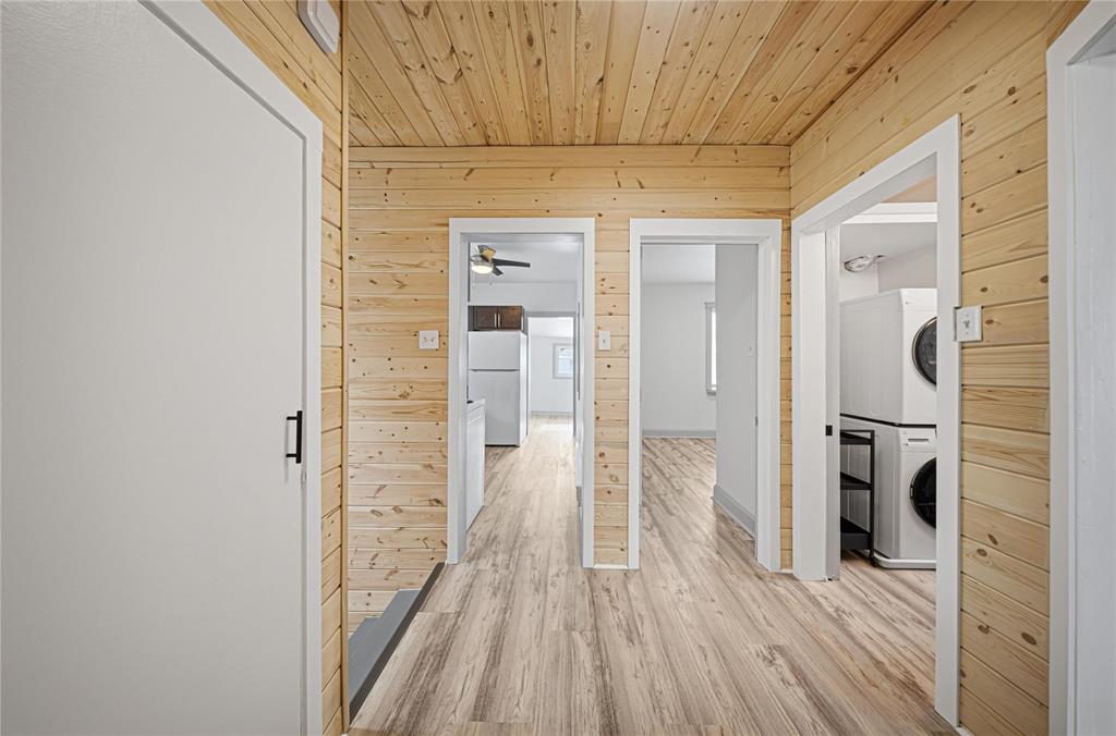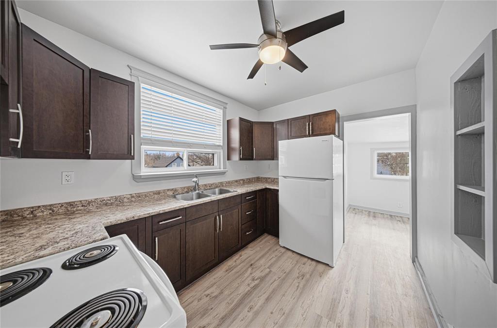 S/S now, OTP anytime leave open 24 hrs. Welcome to this extensively renovated duplex with two civic addresses live in one unit while renting the other or add a well updated property to your portfolio. The main floor has a spacious living rm w/ hardwoods & kitchen w/ Kitchen Craft soft closing cabinetry & counters (2019), newer appliances (stove 2026 & fridge 2020). 2 bedrms & updated bathrm complete the level, w/ bsmt access for flexible space, laundry (washer/dryer 2020) & cold storage. Upstairs features tongue & groove wood walls (2024), LVP flooring (2022), 2021 kitchen reno w/ Kitchen Craft soft closing cabinetry, updated counters & newer appliances (2022), 2 bedrms plus a cozy den, living area, updated bathrm & in-suite laundry (washer/dryer 2026). Updates include Safe & Sound insulation between units (2022), 2x100 amp panels (2020), hi-eff furnace & AC (2020), baseboard heaters (2021), interior paint (2025). Outside features a large yard, deck & huge insulated double garage (23x21) w/ shingles (2024) & insulated overhead doors (2020) exterior paint (2019), hydro meters (2020), chain link fence w/ sliding gate (2020) & so much more. Well Cared for with strong rental potential!