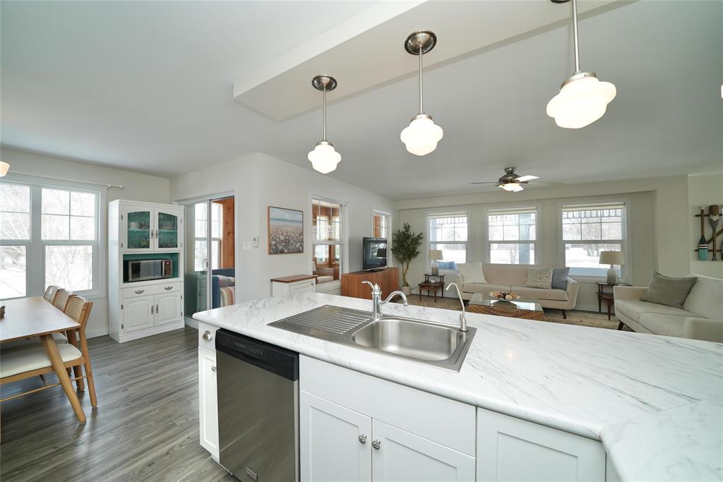 Step inside to discover a bright and inviting layout featuring 3 bedrooms, including a convenient main floor primary bedroom, and 2 full bathrooms. The home is designed for both everyday living and relaxation, with a sunroom that fills the space with natural light and a gorgeous screened-in front porch—perfect for enjoying peaceful mornings while taking in the lake views. The exterior is just as impressive, boasting a well-cared-for yard with mature landscaping, a fully fenced backyard, and a spacious deck ideal for entertaining or unwinding in privacy. Built with quality and durability in mind, the home features an ICF and bell piled foundation, along with a massive 30 x 24 heated and insulated garage—perfect for vehicles, storage, or a workshop. This one-of-a-kind property offers the perfect blend of character, craftsmanship, and serene surroundings.