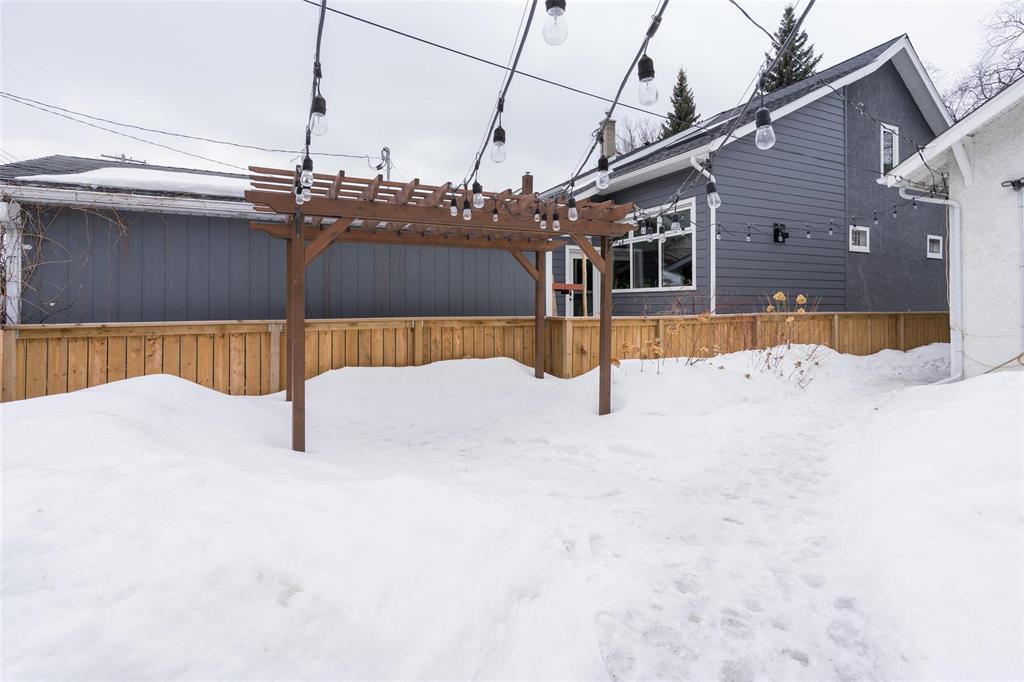 Offers reviewed Tues, March 31 (PM). Welcome to this beautifully maintained bungalow in the highly desirable River Heights! Blending timeless character w/thoughtful upgrades, this 960 sqft home offers 4 bedrooms & 2 full bathrooms—ideal for families or those seeking extra space. Step into the bright 4-season front sunroom, a perfect year-round retreat. The main floor showcases original hardwood floors, & French doors. The living room features pot lighting & a cozy gas fireplace, creating a warm & welcoming atmosphere. The kitchen is designed for both function & style, complete w/granite countertops, espresso soft-close cabinetry, tile backsplash, breakfast nook, & newer s/s appliances. 2 bedrooms filled w/natural light & a stylish 4-pce bathroom w/a recently refinished tub completes the main floor. The fully fin.bsmt offers 2 spacious bedrooms w/large closets, a comfortable rec room, an updated 3-pce bathroom, laundry area & ample storage. Outside-landscaped backyard features a pergola, garden boxes & interlocking brick-creating a lovely outdoor vibe. Numerous upgrades completed over the years. Perfect blend of character, comfort & location-walking distance to schools & amenities. Don't miss this gem!