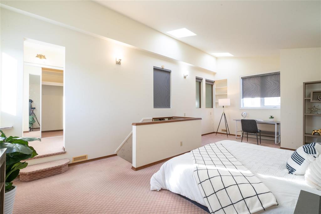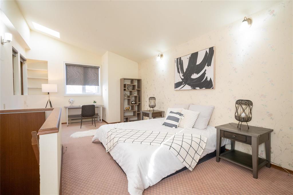 Offers anytime! OPEN HOUSE April 4th, Sat 2-4 pm. Welcome to this architecturally designed 2113 sq.ft. home in desirable Richmond West.This well-maintained two-storey offers 4 bedrooms and 2.5 bathrooms,perfect for families or shared living.The grand foyer features a 17’ ceiling, creating a bright and open first impression.The main floor includes a spacious living room with updated LVP flooring (2022),formal dining area, and a functional European-style kitchen with breakfast bar, open to a large family room/ four-season sunroom with vaulted ceiling, oversized windows,and patio doors leading to a private backyard.A convenient mudroom is located off the attached garage.Upstairs offers a generous primary bedroom with walk-in closet and 4-piece ensuite,along with three additional well-sized bedrooms and a 5-piece main bath.Second-floor laundry adds everyday convenience. Numerous updates over the years including PVC windows (2013), furnace& A/C(2010), shingles, and more.The fully landscaped yard features a deck and patio, perfect for outdoor enjoyment. Located on a quiet street close to schools,University of Manitoba,shopping,and all amenities.A great opportunity in a sought-after neighbourhood!