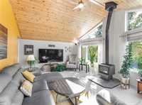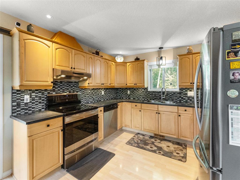 Looking for a year round home or upscale cottage to escape the city? This immaculate property is sure to impress! Located in Lester Beach on a beautifully landscaped .71 acre lot this 1220 sg ft home w/ 3 car garage may be the one you've been looking for. The kitchen features Maple cabinets, a glass backsplash & stainless steel appliances. The adjacent dining area is warm and welcoming w/patio doors to the wrap around deck. The living room boasts a vaulted Pine ceiling, a woodstove (2022) & soaring windows overlooking the yard. 4 pc main bath and 3 spacious bedrooms, the primary has a 3 pc ensuite (renovated in 2023). Off of the entrance way there's a laundry/storage area and a bright & airy room currently used as an office. With plenty of trees & shrubs this park like yard is a great area to play or to relax by the firepit. Entertain in the 12 x 12 screened gazebo built in 2024. Grow your own plants or vegetables as there's a greenhouse & a shed for all your beach belongings. The 36 x 30 garage w/infloor heat is just what you need to store your boat, sea-doos & snowmobiles. Take a 5 min walk down a path to the waters edge. Close to the beach, stores, golf & other amenities. You won't be disappointed.