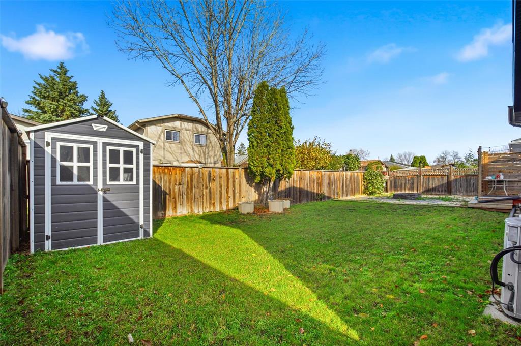 Offers as Received! This rare 1,868 sq.ft. bungalow offers exceptional space + comfort, Nestled on a quiet bay, beautifully landscaped yard and a double attached garage. The main floor showcases a bright, open layout w/an L-shaped living + dining room—perfect for entertaining or family gatherings. The spacious eat-in kitchen provides plenty of cabinetry + counter space and opens to a huge family room filled with gas fireplace. There are three generous bedrooms and two full bathrooms on the main floor, including the primary suite complete w/ 2 walk-in closets, a cozy office area, + 4pc ensuite, featuring a relaxing soaker tub and a separate shower. The fully finished basement offers an expansive recreation room, a newly carpeted area (2019), 2 pc bath, and a fourth bedroom—ideal for guests, teens, or a home gym. Recent updates add even more value and peace of mind, including:Soffit and exterior paint (2017), HEPA filter system (2017), Widened driveway (2016), New shed (2021),Hot water tank (2021), New fridge + washer (2025) Enjoy the tranquility of the beautifully landscaped yard.This home offers a wonderful blend of functionality, style, and long-term value.