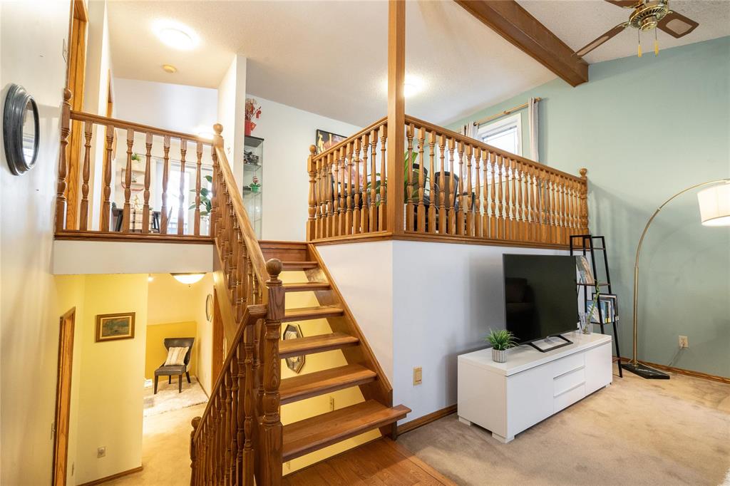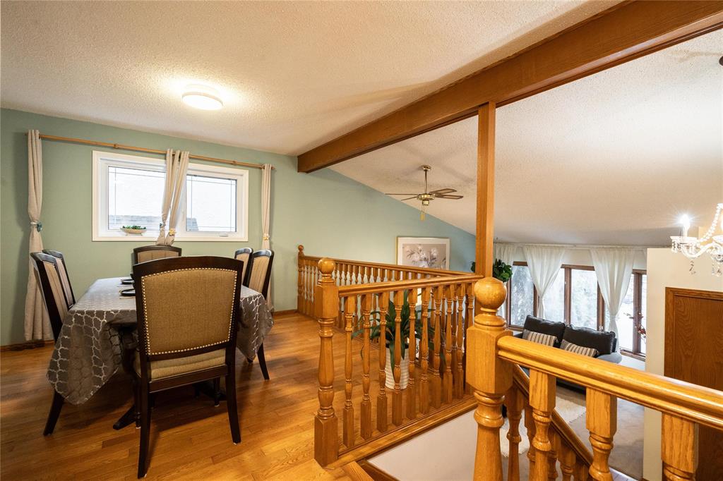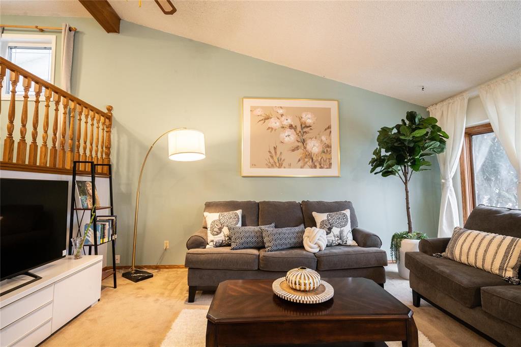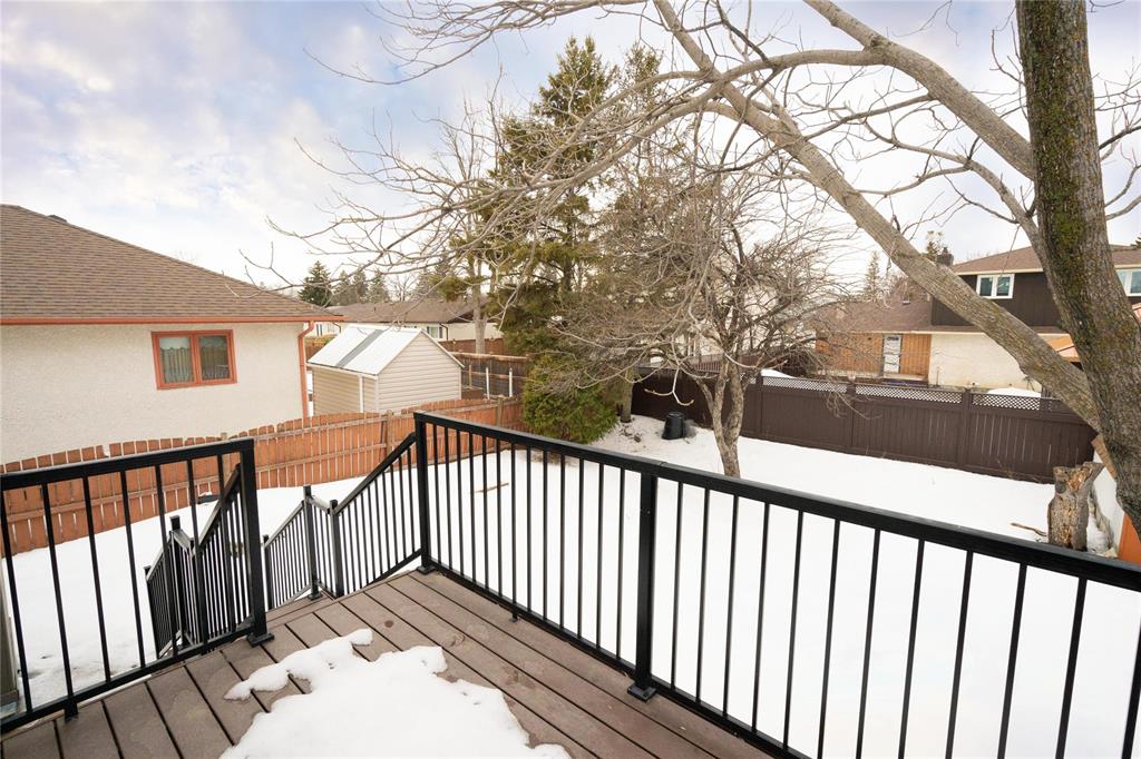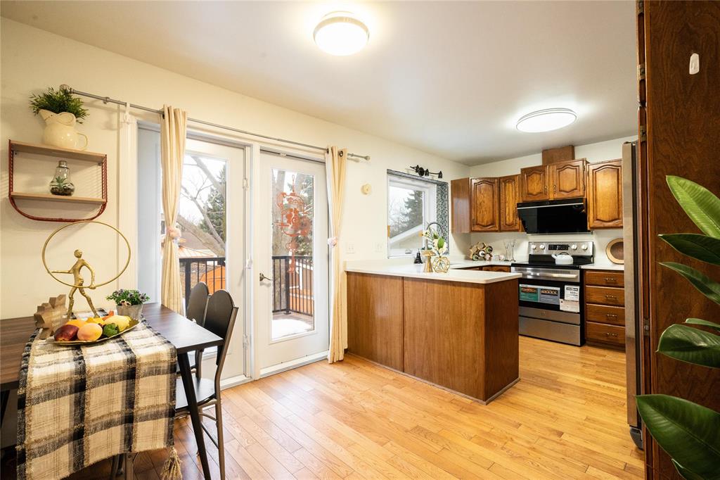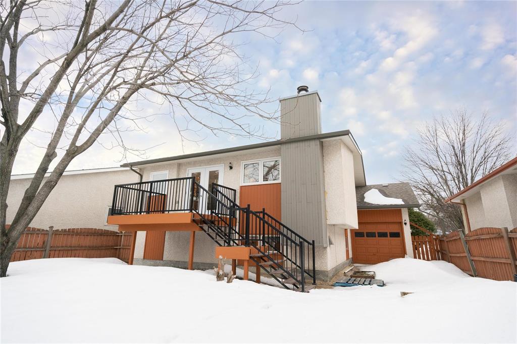 OTP April 1st, Wed eve. OPEN HOUSE Mar 28/29 Sat/Sun 3-5 pm. Located on a desirable street in well-established St. Vital, this beautifully maintained 1,623 sq.ft. 4-level split shows pride of ownership throughout. The bright main floor features a spacious family room with vaulted ceilings, hardwood flooring, and a formal dining area overlooking the living space. The updated kitchen offers ample counter space, peninsula, stained glass cabinet accents, mosaic tile detail, newer countertops (2025), and a new stove (2026). This home offers 3 bedrooms, including a spacious primary bedroom with updated ensuite and remodeled shower (2018). The lower level includes a cozy family room with wood-burning fireplace and large windows, also features a 4-piece bath with sunken Jacuzzi, office space, and abundant storage. Enjoy the fully landscaped yard with mature trees, interlocking brick patio, maintenance-free composite deck, and insulated double attached drive-through garage. Upgrades include some newer windows, AC (2021), hot water tank (2025), and more. Great place to call home!