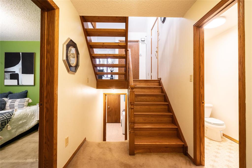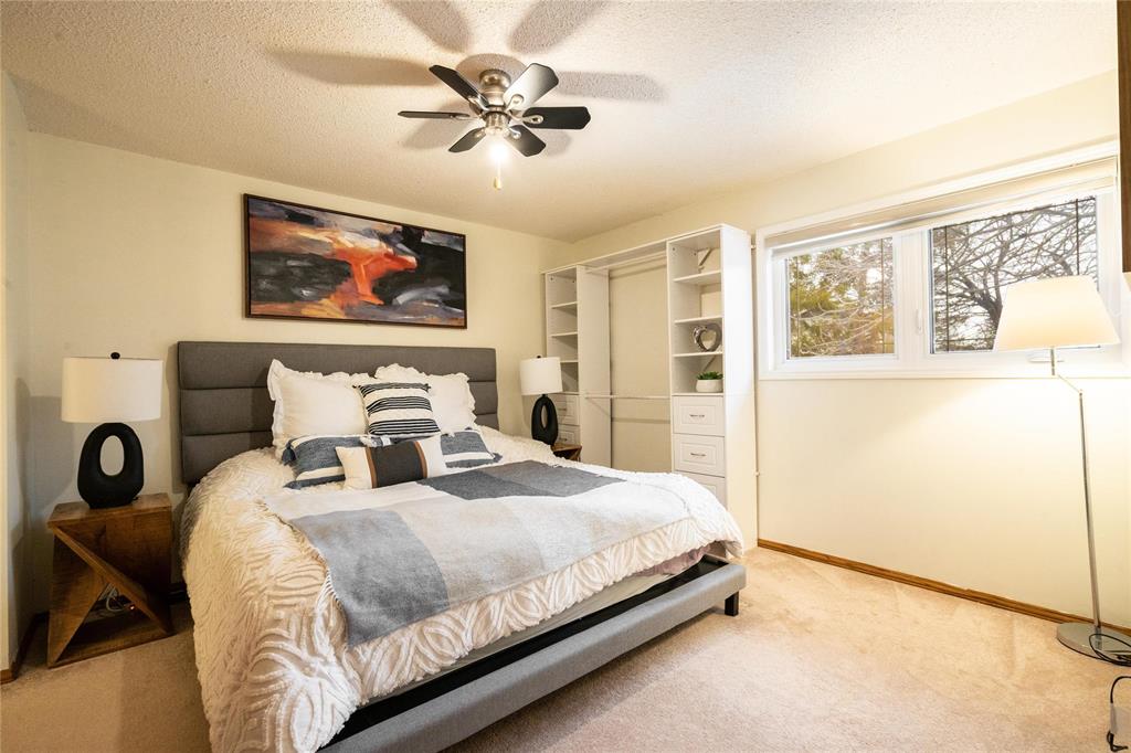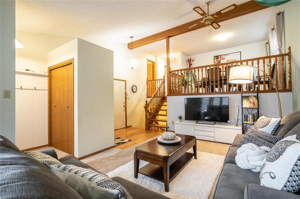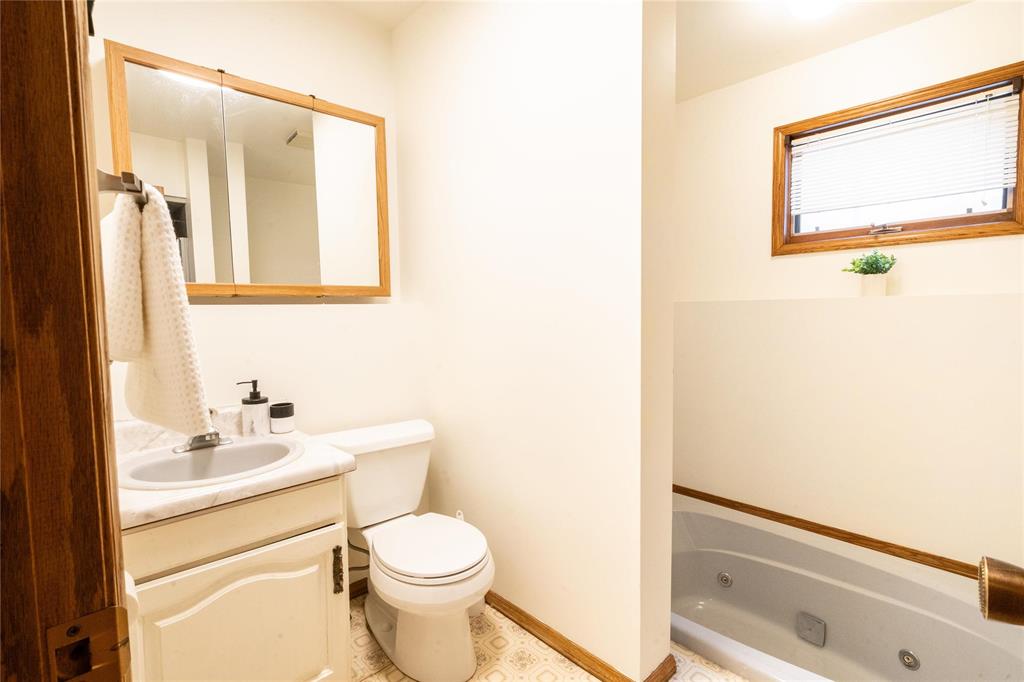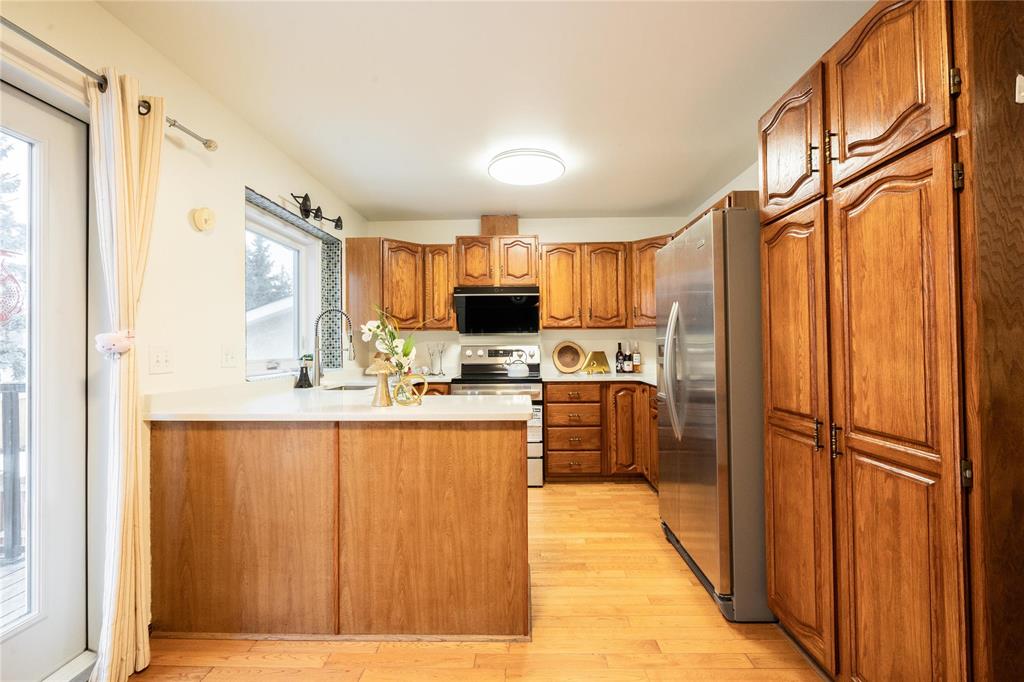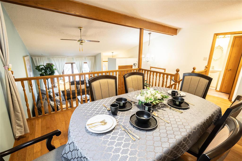 OTP April 1st, Wed eve. OPEN HOUSE Mar 28/29 Sat/Sun 3-5 pm. Located on a desirable street in well-established St. Vital, this beautifully maintained 1,623 sq.ft. 4-level split shows pride of ownership throughout. The bright main floor features a spacious family room with vaulted ceilings, hardwood flooring, and a formal dining area overlooking the living space. The updated kitchen offers ample counter space, peninsula, stained glass cabinet accents, mosaic tile detail, newer countertops (2025), and a new stove (2026). This home offers 3 bedrooms, including a spacious primary bedroom with updated ensuite and remodeled shower (2018). The lower level includes a cozy family room with wood-burning fireplace and large windows, also features a 4-piece bath with sunken Jacuzzi, office space, and abundant storage. Enjoy the fully landscaped yard with mature trees, interlocking brick patio, maintenance-free composite deck, and insulated double attached drive-through garage. Upgrades include some newer windows, AC (2021), hot water tank (2025), and more. Great place to call home!