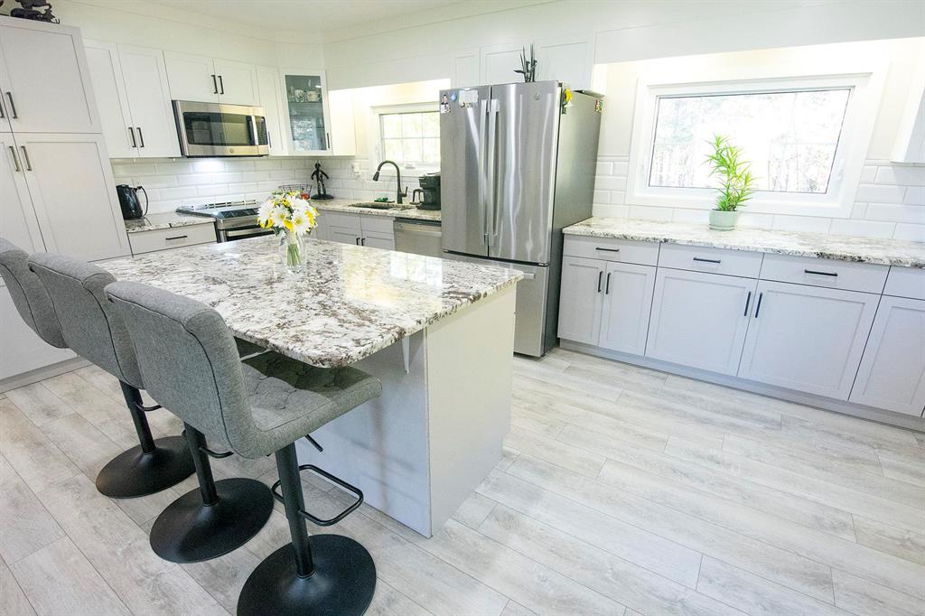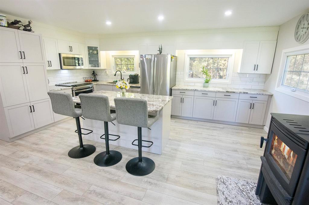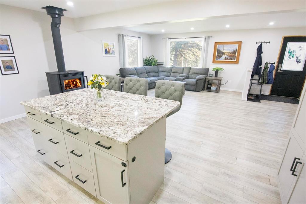 OPEN HOUSE SUN, APR 12, 12-2PM NESTLED ALONG THE WINNIPEG RIVER, THIS REMARKABLE 10.5-ACRE PROPERTY OFFERS A PERFECT BLEND OF SECLUSION, NATURAL BEAUTY & MODERN COMFORT. Surrounded by your own forest with a meandering creek & winding private drive, the setting is peaceful & picturesque. The 1176 sq.ft. 3 bedroom bungalow has been renovated & thoughtfully designed for effortless living. The open-concept layout combines the living room, kitchen & dining area, highlighted by recessed lighting & new flooring throughout. The kitchen features new cabinets, granite countertops & large island—ideal for cooking, entertaining or gathering with family. Cozy up by the high-efficiency woodstove, adding warmth & ambiance to the main living area. Add’l upgrades include triple-pane windows & metal roof, combining comfort & efficiency throughout the home. Step outside to a tiered 24x14 deck with stunning views of the yard, surrounding trees & water. The property also features a fenced backyard, waterside deck & dock & open meadow. Ideally located, Pinawa, Lac du Bonnet & Whiteshell Provincial Park are just minutes away. A private, park-like riverfront retreat—where tranquility, nature, & modern living come together.