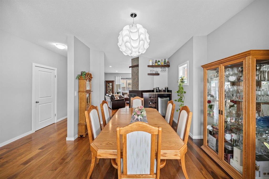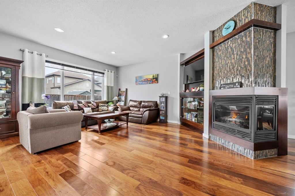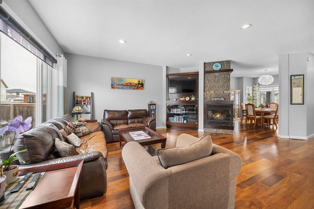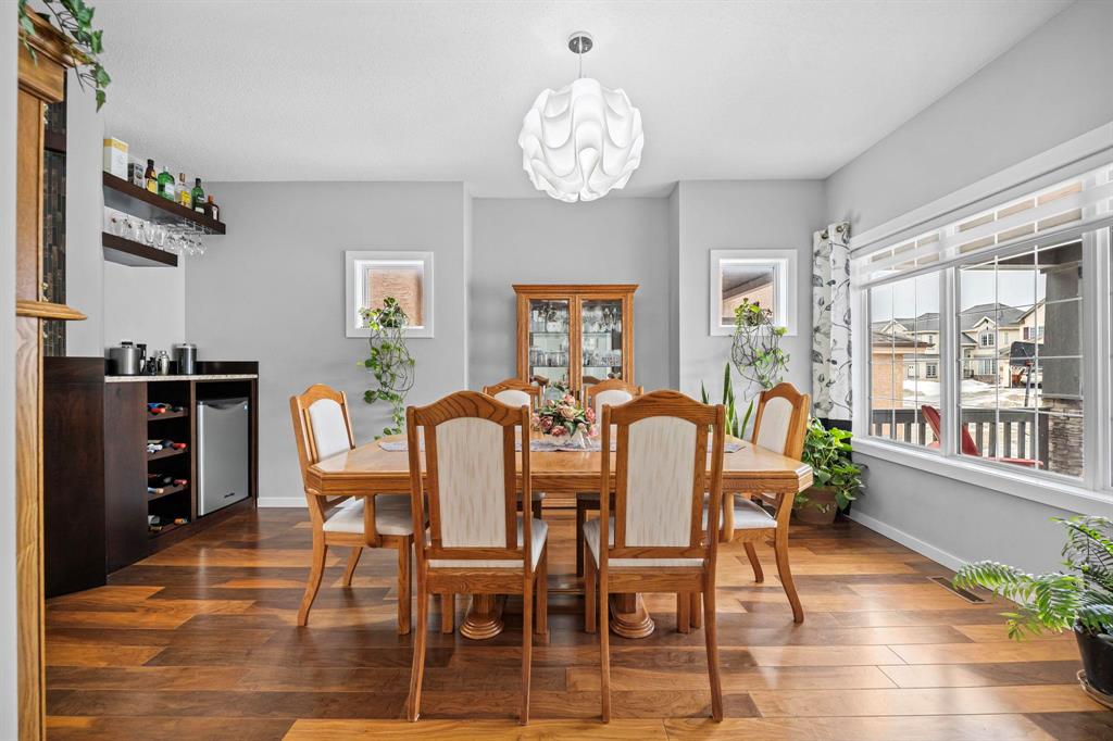 AMAZING VALUE! Sage Creek stunner where style, space & lifestyle come together seamlessly! This beautifully maintained two-storey shines with a bright open-concept main floor featuring hardwood floors, tall ceilings & upscale finishes throughout. A front dining area with dry bar sets the tone, flowing into a warm living room with gas fireplace, tiled surround & feature wall. The chef-inspired kitchen impresses with rich cabinetry, stone countertops, SS appliances, corner pantry, oversized island w breakfast bar & patio door for effortless indoor-outdoor living. A powder room completes the level. Upstairs offers 4 bedrooms including a spacious primary with WIC & ensuite, plus convenient second-floor laundry. The fully finished basement adds even more versatility with a large rec room & 2 additional bedrooms. Outside, enjoy a landscaped backyard with deck, patio, firepit & green space. Double attached garage. Steps from parks, trails & Sage Creek amenities—this is the one.