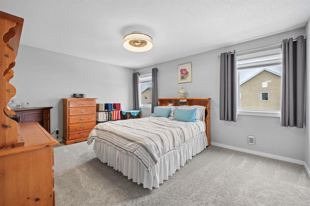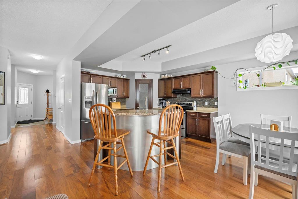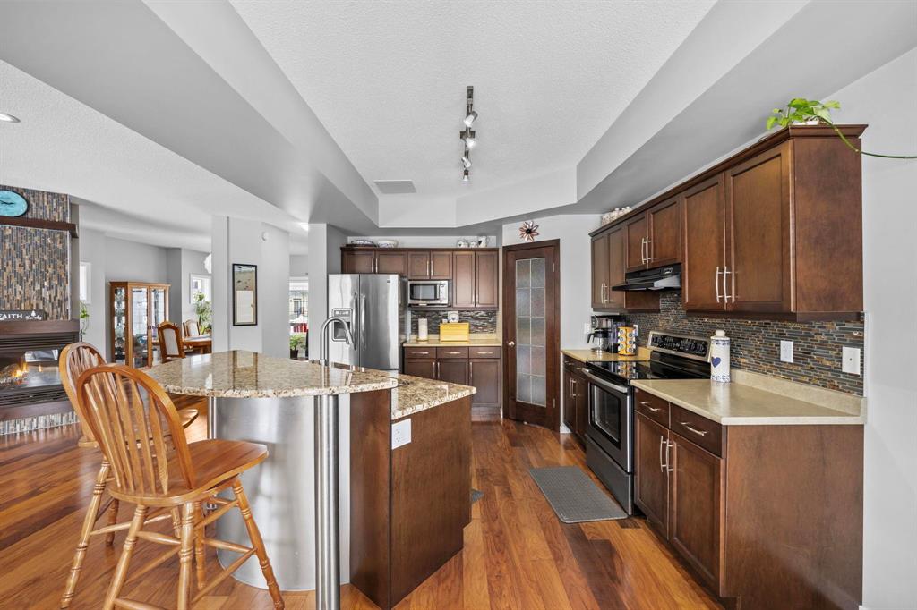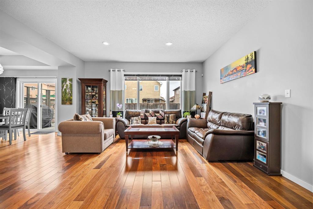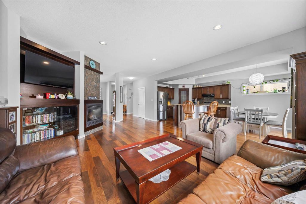 AMAZING VALUE! Sage Creek stunner where style, space & lifestyle come together seamlessly! This beautifully maintained two-storey shines with a bright open-concept main floor featuring hardwood floors, tall ceilings & upscale finishes throughout. A front dining area with dry bar sets the tone, flowing into a warm living room with gas fireplace, tiled surround & feature wall. The chef-inspired kitchen impresses with rich cabinetry, stone countertops, SS appliances, corner pantry, oversized island w breakfast bar & patio door for effortless indoor-outdoor living. A powder room completes the level. Upstairs offers 4 bedrooms including a spacious primary with WIC & ensuite, plus convenient second-floor laundry. The fully finished basement adds even more versatility with a large rec room & 2 additional bedrooms. Outside, enjoy a landscaped backyard with deck, patio, firepit & green space. Double attached garage. Steps from parks, trails & Sage Creek amenities—this is the one.