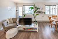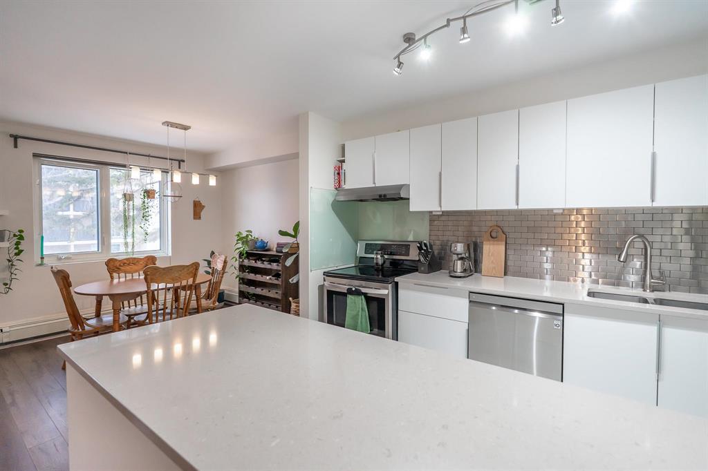 Offers anytime. Feast your eyes on this gorgeous 2 brs/1 bath condo in South River Heights. A bright, open concept main living area invites you into the light-filled space. The updated kitchen offers ample storage, a large peninsula with Quartz counters, a modern backsplash and stainless steel appliances. The in-suite laundry is neatly tucked away. The dining area comfortably hosts your friends and family, all while the living room offers space for you to stay in the thick of the conversation. Step outside the door to your East-facing balcony, where you can sip your morning coffee. The primary bedroom is spacious with a large closet and a window for natural light. The 2nd bedroom is also well-sized and can double as an office or studio. The bath has been updated and is sparkling clean. Other thoughtful updates include: interior doors, PVC windows, flooring, neutral paint, new fridge, and light fixtures. A separate storage locker and outdoor parking spot with a plug-in round out this well-appointed condo. It's located on a bus route, close to Ikea, The Seasons of Tuxedo, Superstore and more. Call a Realtor today to view this move-in-ready condo.