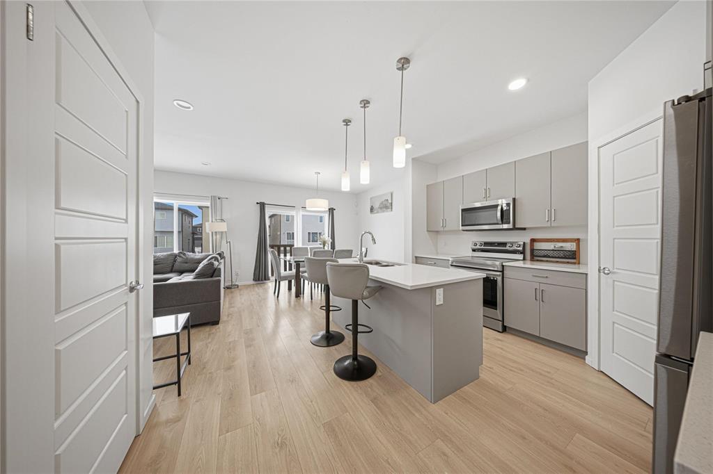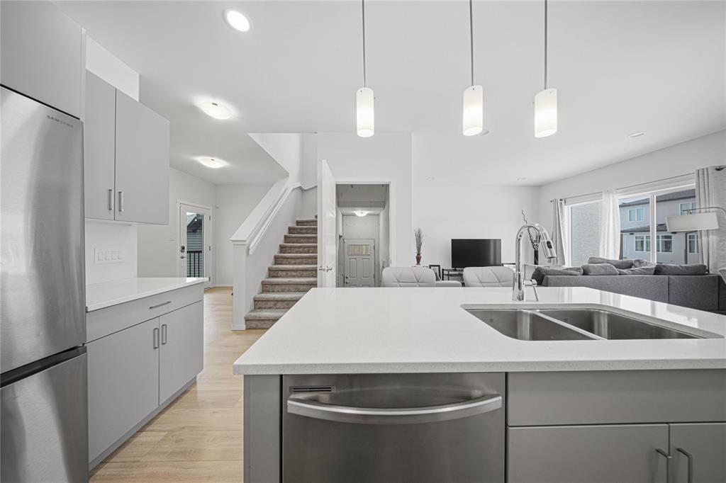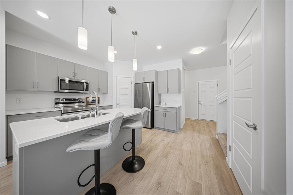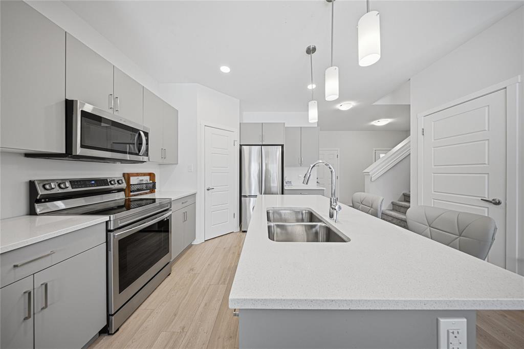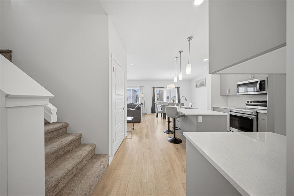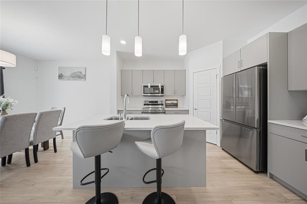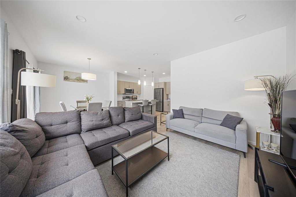 Welcome to 99 Jerry Klein Drive! Thoughtfully designed for growing families and elevated living, this home offers a rare 4 Bed layout all on the upper level perfectly balancing space, function, and privacy. Step inside to a bright, open concept main floor that immediately feels like home. The spacious great room flows effortlessly into a beautiful kitchen, featuring an extended island, quartz countertops, sleek cabinetry, and elegant pendant lighting ideal for both entertaining and daily living. The dining area overlooks the backyard through patio doors. Side entrance, and main floor powder room add both flexibility and practicality.