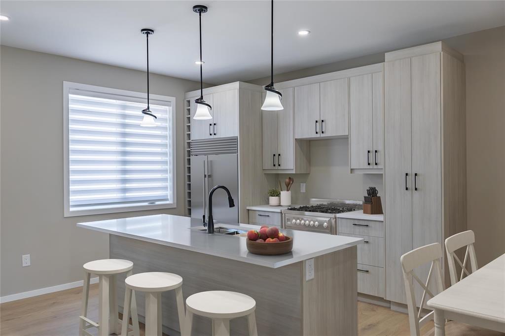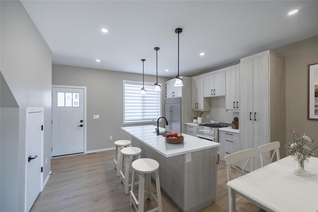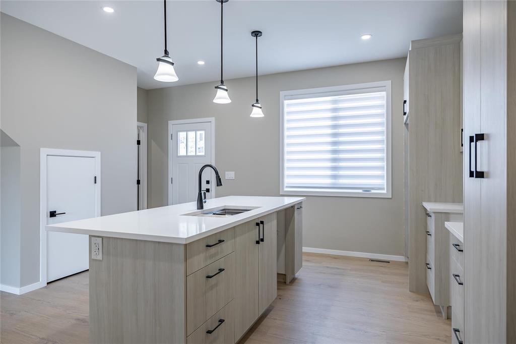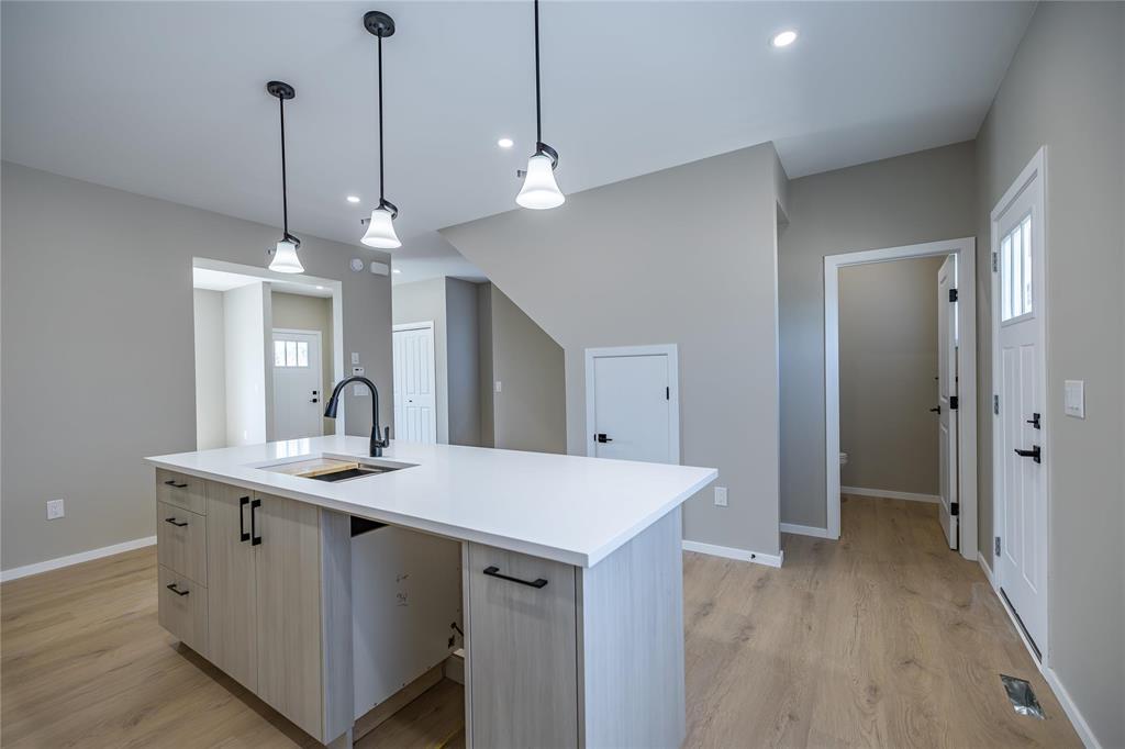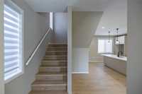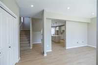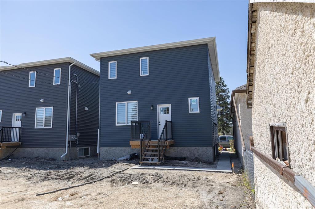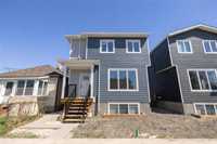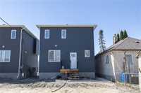Modern Duplex Investment Opportunity. Incredible opportunity to own these side-by-side new construction duplexes in a desirable location. Offering 2,068 sq ft of total living space, this income-generating property features two self-contained units with high-end finishes throughout. The main floor (upper) unit offers 3 bedrooms and 2.5 bathrooms, including a primary bedroom with walk-in closet and 4-piece ensuite. Open-concept design with 9-ft ceilings, luxury vinyl plank flooring, large windows for natural light, and a spacious kitchen with quartz island, undermount sink, modern lighting, and ample cabinetry. Second-floor laundry and plenty of storage. The lower suite is a beautifully finished 1-bedroom suite with a 4-piece bath, generous living area, full kitchen, and in-suite laundry. Built on a piled foundation with suspended wood floors. Ample rear parking. Close to schools, shopping, public transit, and all amenities. Ideal for owner-occupiers or investors seeking a solid revenue property. Live in one unit and rent the other, or rent both for maximum return. Both units are currently rented. A true turnkey investment! Virtual staging has been applied to some interior images.