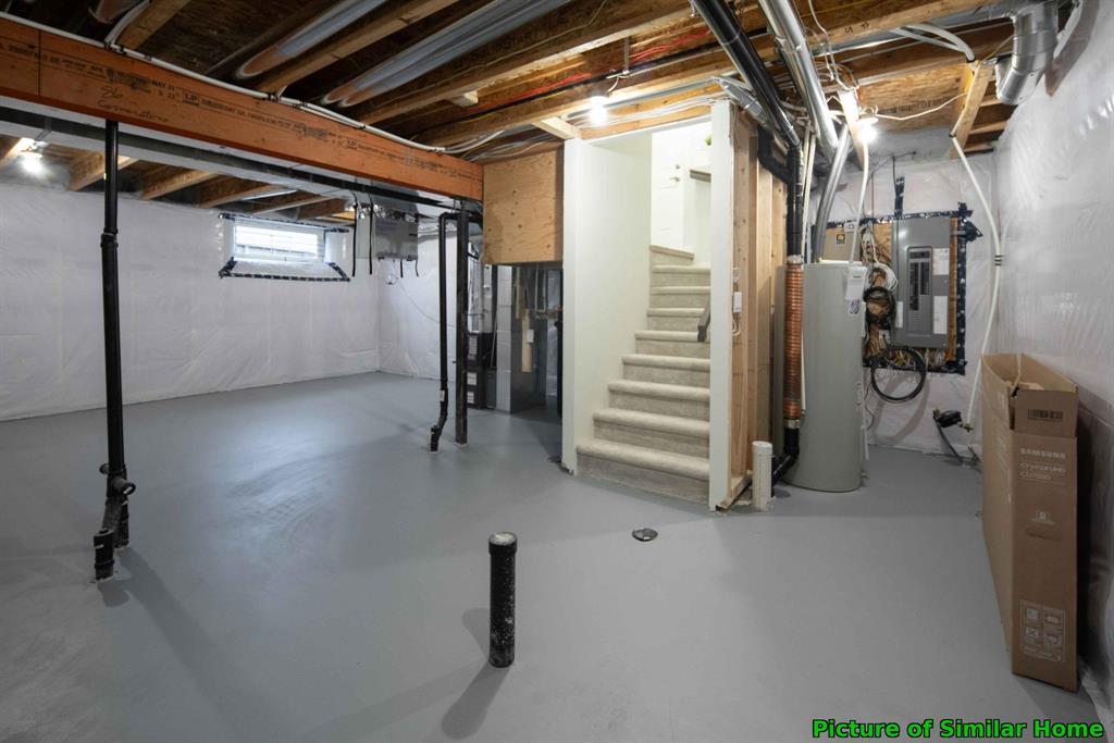Includes side entrance to the basement for future flexibility. Quality construction with piled foundation, flat painted ceilings, Decora switches, lever handles, and insulated garage door with opener. Exterior finished with stone and wood detailing, plus attached garage and full driveway.