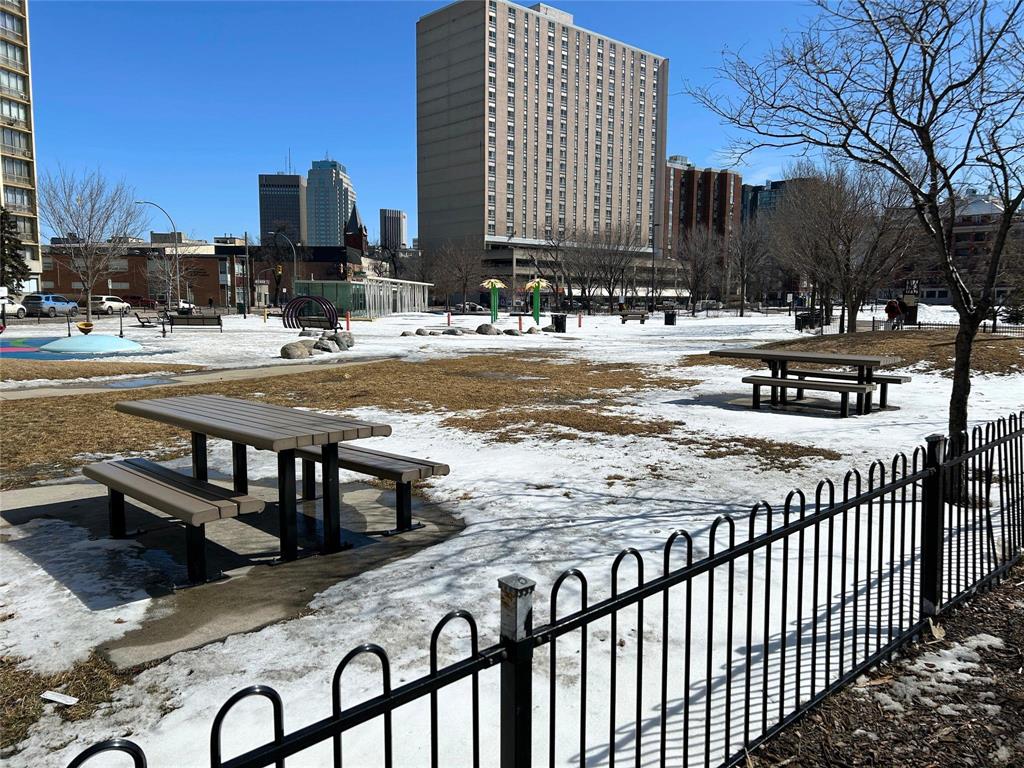 Offers as received. Please provide 24-hours notice for showings. Affordable high-rise condominium located in the heart of Downtown Winnipeg! This well-maintained 1 bedroom, 1 bathroom unit offers a bright and spacious layout with large windows that fill the living room with natural light. Enjoy beautiful wood flooring throughout and a recently updated bathroom tile flooring. Kitchen with plenty of cupboard space. The open dining area flows seamlessly into the living space, making it perfect for both everyday living and entertaining. Card-op laundry available on each floor! Ideal for first-time home buyers or investors looking for a great opportunity in a prime central location. Call to book your appointment!