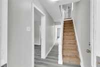 Ss now. Offers as received.Welcome to this beautifully renovated 3-bedroom, 2-bath home offering approximately 1,116 sq ft of comfortable living space. Conveniently located close to parks, schools, shopping centres, and public transportation, this property is perfect for families or first-time buyers. The main floor features a bright and functional layout with one spacious bedroom, while the upper level offers two additional bedrooms plus a versatile den—ideal for a home office or play area. Recent updates enhance both style and functionality throughout. Dimensions are +/- jogs. A fantastic opportunity to own a move-in ready home in a desirable location!