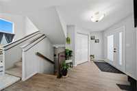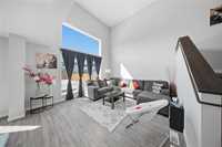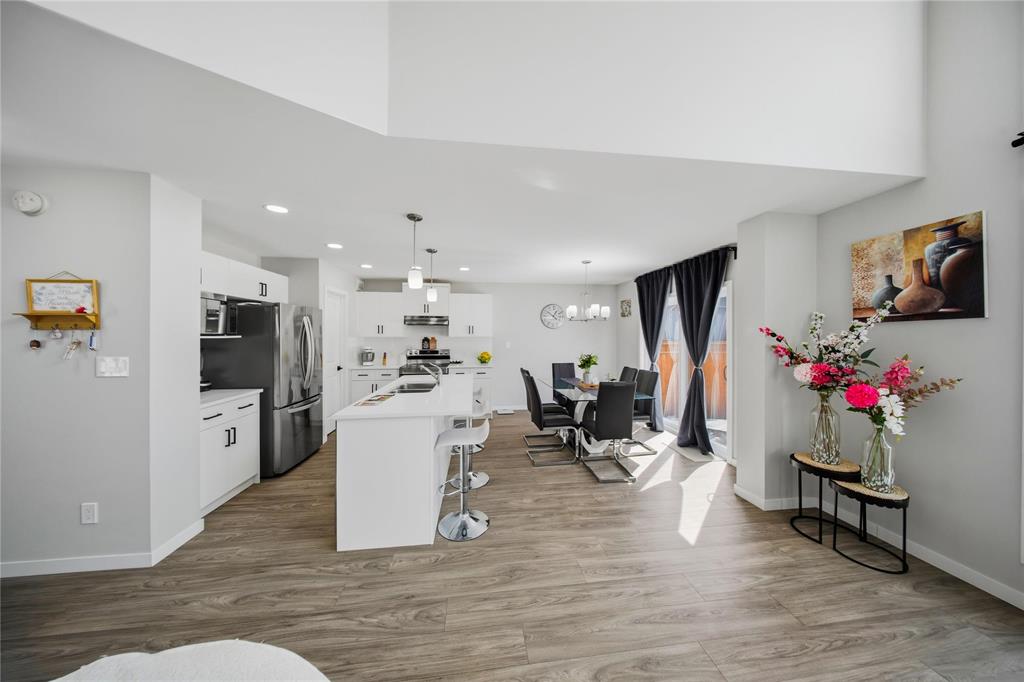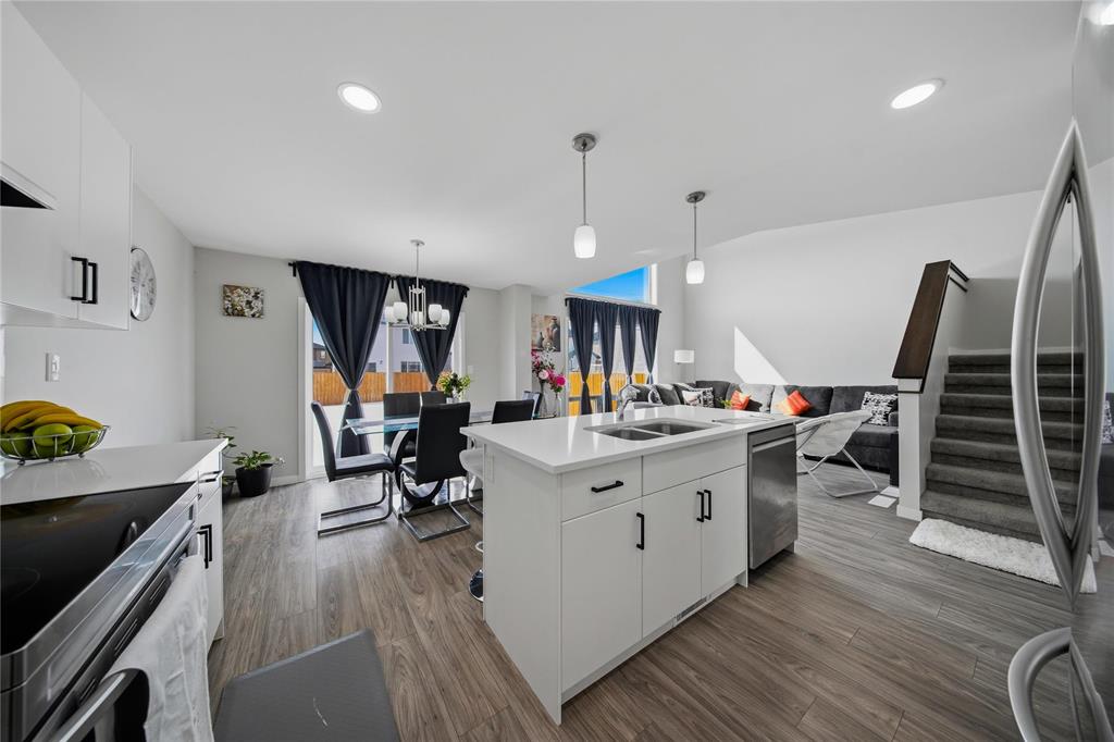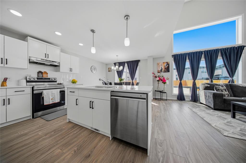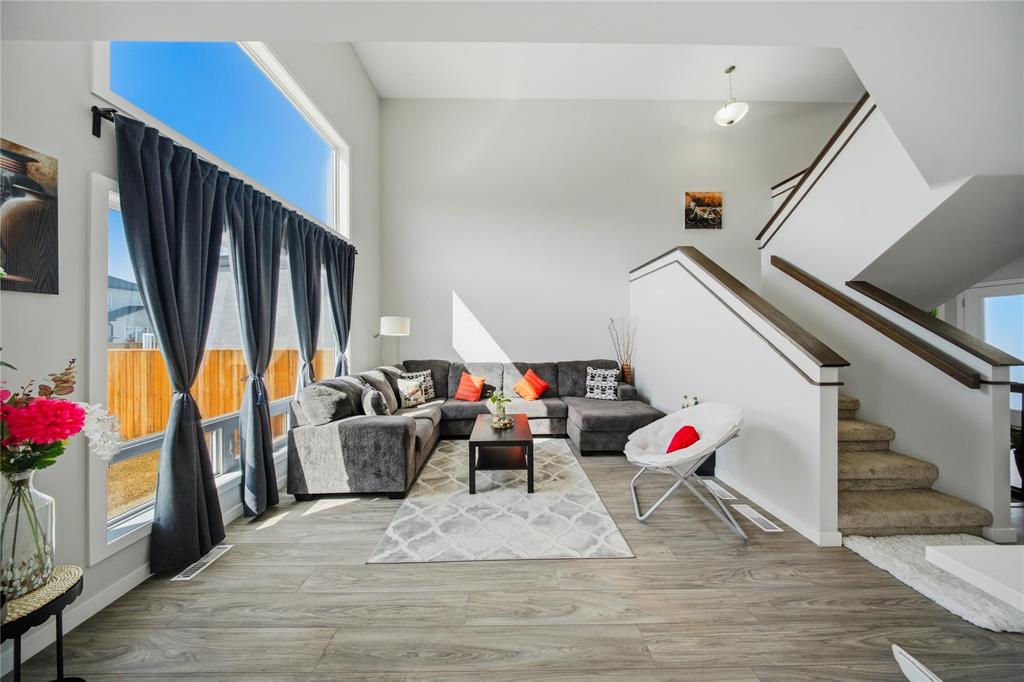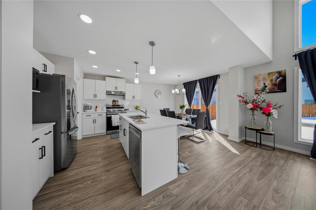 Built in 2021, this stunning home offers 1,693 sq ft of thoughtfully designed living space with 4 bedrooms and 2.5 bathrooms. Step into a bright, open-concept layout featuring a breathtaking great room with soaring ceilings that create an airy, inviting feel. The modern kitchen is beautifully finished with quartz countertops throughout and a stylish tile backsplash—perfect for both everyday living and entertaining. A main-floor bedroom provides flexibility for guests or a home office. Upstairs, the spacious primary suite features a walk-in closet and private ensuite, while two additional bedrooms share a full bathroom. A bonus loft and convenient second-floor laundry complete the upper level. Additional highlights include a 20’ x 24’ garage, durable laminate flooring, and a wood-capped staircase. The fully fenced and landscaped yard is move-in ready, and the unfinished basement offers endless potential for future development.