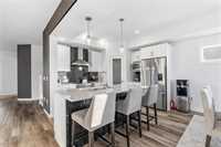 S/S now. Offers reviewed as received. OPEN HOUSE April 25, 3-5 PM. Discover the epitome of lakeside luxury with this exquisite property, perfectly designed for refined family living. The inviting front porch sets a warm tone, welcoming guests with elegance and charm. Inside, an impressive receiving room flows seamlessly into a formal dining area, while the open-concept main floor features luxurious vinyl-plank flooring throughout. The modern eat-in kitchen is a chef’s dream, complete with quartz countertops, a tiled backsplash, a hood range, & high-end stainless steel appliances, complemented by a cozy dinette and a spacious great room with breathtaking lake views. Upstairs, you'll find three generously sized bedrooms, a versatile loft, and two full baths, including a luxurious primary suite with a walk-in closet, a soaker tub, and a separate shower. The insulated basement offers endless potential, ready for your personal touch. The expansive backyard boasts a two-level maintenance-free composite deck, ideal for entertaining, and is mostly fenced for privacy. With the lake just beyond your backyard, summer days will never be the same—book your private tour today!