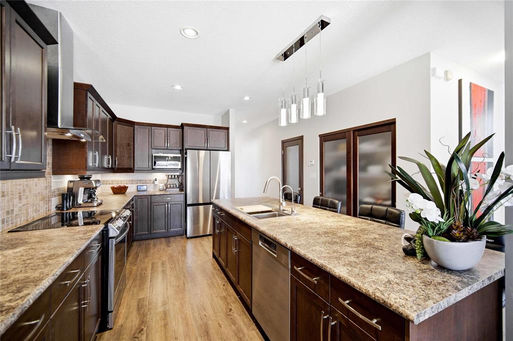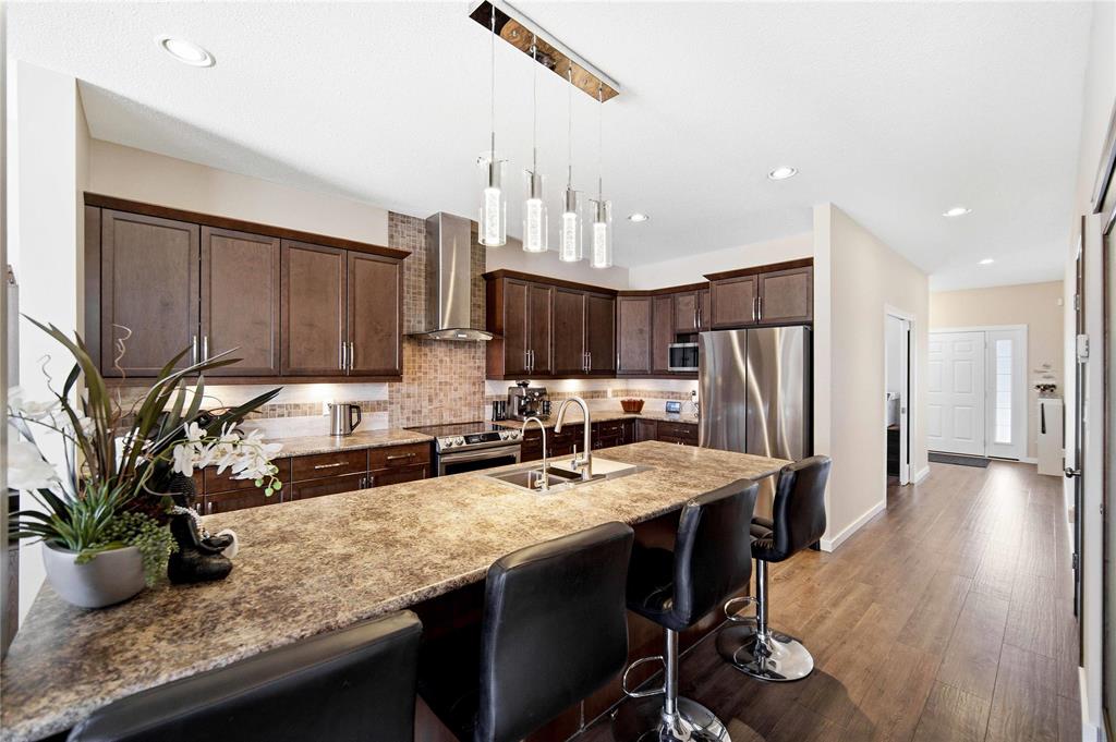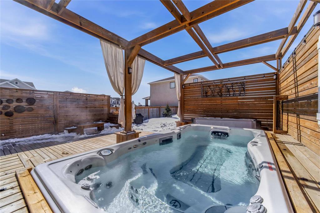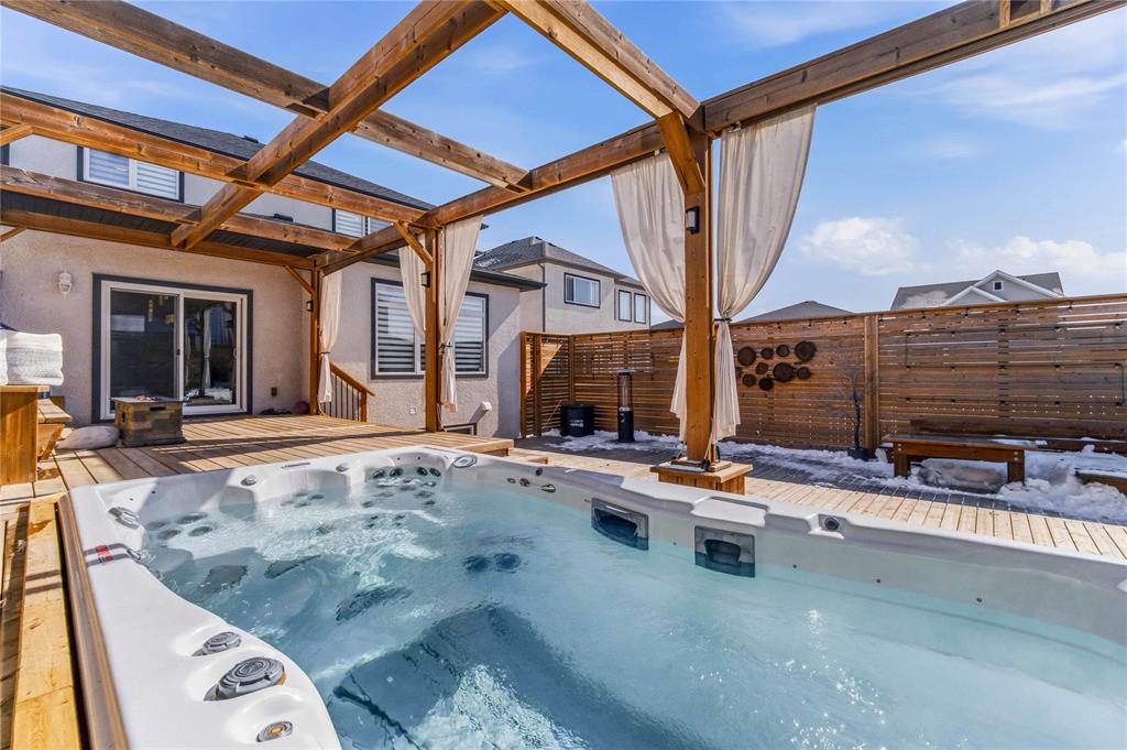 SS April 6th, Offers April 13th. Welcome to this exceptional family home in sought-after Bridgwater Trails, where thoughtful design meets incredible indoor/outdoor living! From the moment you enter, you’ll appreciate the bright, open layout featuring a dedicated office, cozy LR, & spacious dining area overlooking your private backyard retreat. The chef-inspired KT is a true highlight, complete w/ high-end appls, ample cabinetry & workspace—perfect for hosting & everyday living. Soaring 9’ ceilings enhance the open, airy feel throughout. Upstairs offers 4 generous BRs, including a stunning primary retreat w/ walk-in closet & private ensuite—your own peaceful escape at the end of the day. The fully finished and raised bsmt adds even more versatility w/ 2 additional BRs, a large rec rm & gym area—ideal for growing families or guests. Step outside to a truly one-of-a- kind backyard oasis featuring a massive 2 tier, 1,400sf deck w/ built-in storage & seating, pergola, privacy fence & impressive swim spa—perfect for relaxing or entertaining year-round. Complete w/ dbl attached garage, extended driveway & RV parking, all just minutes from parks, schools & amenities. This is more than a home— it’s a lifestyle