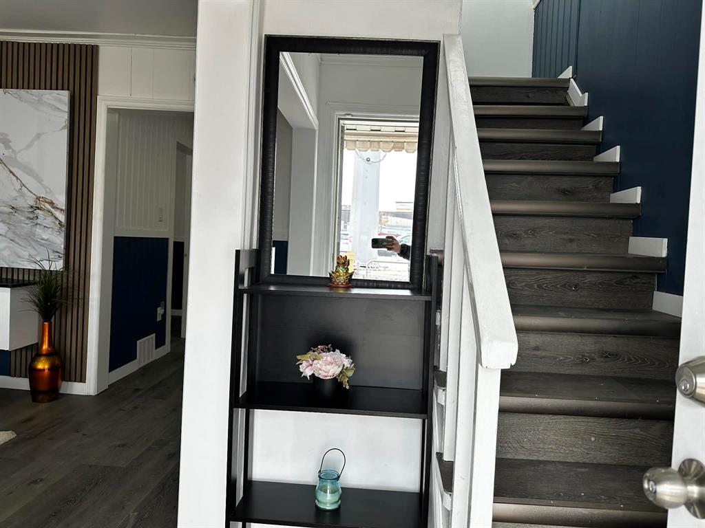 Start showing now. Open house April 12, Sunday 1:00-3:00pm. Offer anytime. Welcome to this charming 3 bedroom home close to Mcphillips St. Thoughtfully designed with modern aesthetics, this property blends style, comfort and functionality. Main floor features a luxury vinyl plank flooring, primary bedroom, nicely decorated living room, a dining room, eat in kitchen, 4-pc bathroom, and the conveniently located main floor laundry area. There are 2 good sized bedrooms in the upper floor, with new flooring and freshly painted. Home is fully fenced with large backyard, new 10x16 deck, and double det. garage. Close to all level of school, public transport and shops of North Gate and Garden City.