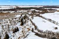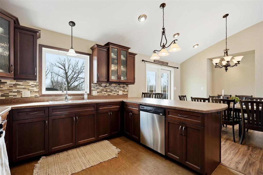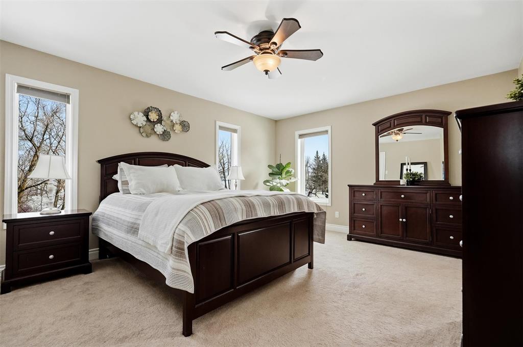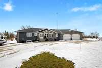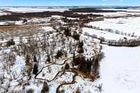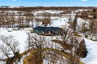 Serine country living on 5.96 Acres along Bear Creek makes this 1,512 sq. ft. family home feel like its own private paradise. This remarkable custom built home features incredible vault and barrel ceiling in the living and kitchen area, making the space feel bright and inviting. Loads of kitchen cabinet space with appliances, spacious dining room, and bright west facing living room. Just off the kitchen there is office space, 2 pce bath, laundry, and access to the oversized double garage that offers room for vehicles, toys, and additional storage. The main floor is complete with a 3 pce bath with jetted tub, large primary bedroom with 3 pce ensuite & walk in closet, and a secondary spacious bedroom. Downstairs your dream rec room ideas can run wild. Loads of lighting, pellet stove, and large windows it adds a great deal of living space. 3 pce bath and large bedroom complete the downstairs. Outside you'll feel right at home with the incredible views, beautiful landscaping, play structure for the kids, and storage sheds for additional storage space. Beautiful East facing deck off the home overlooking the creek, perfect for your slow mornings with a coffee. Its more than country living, its a lifestyle.