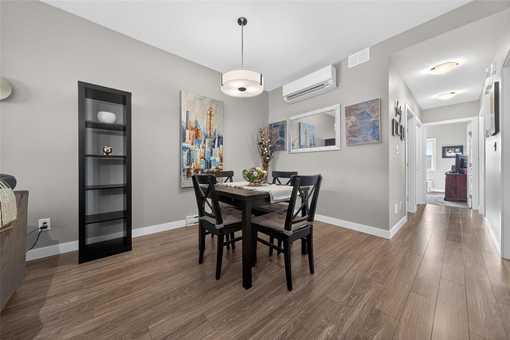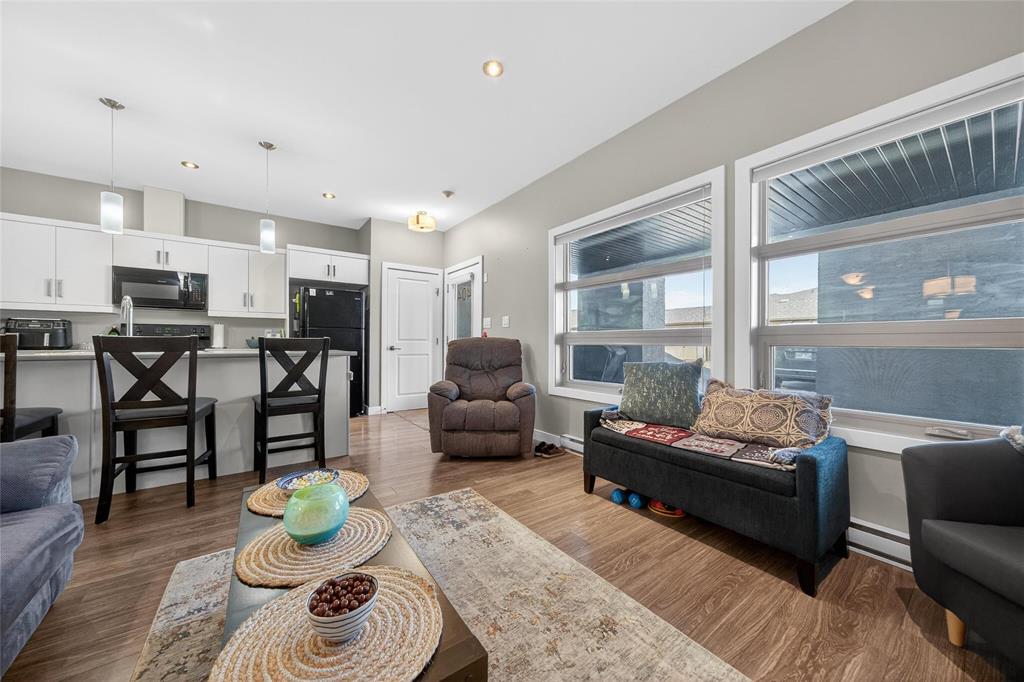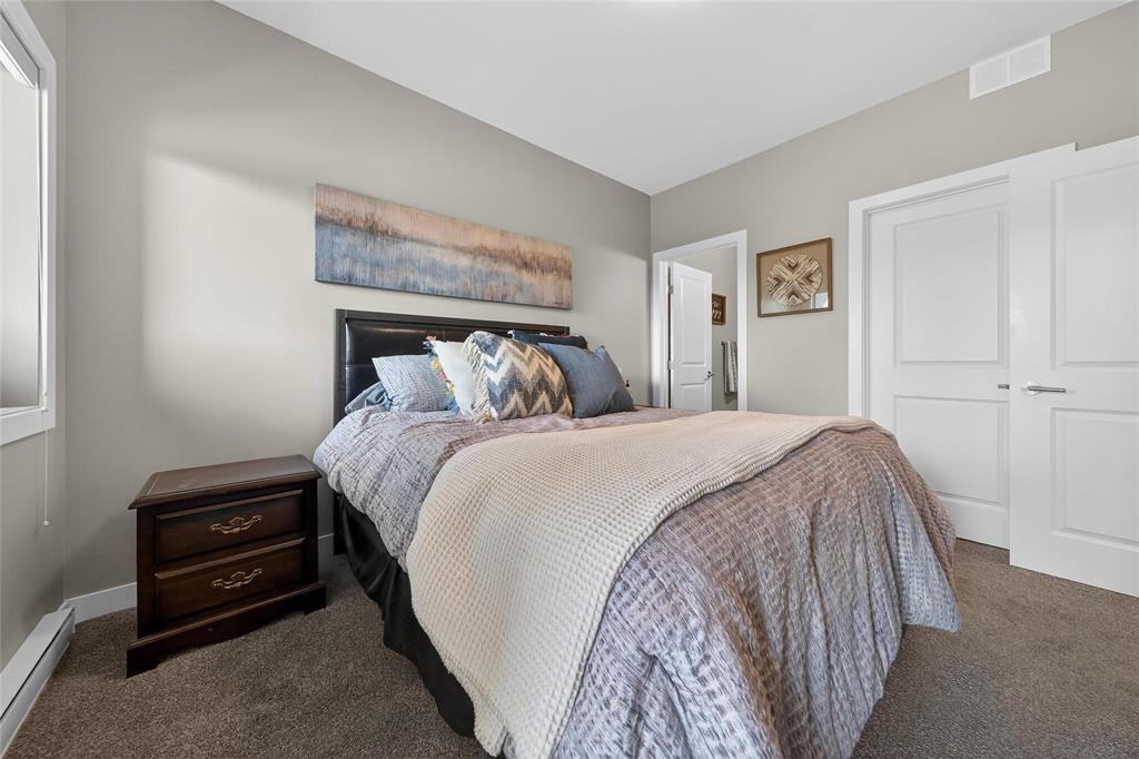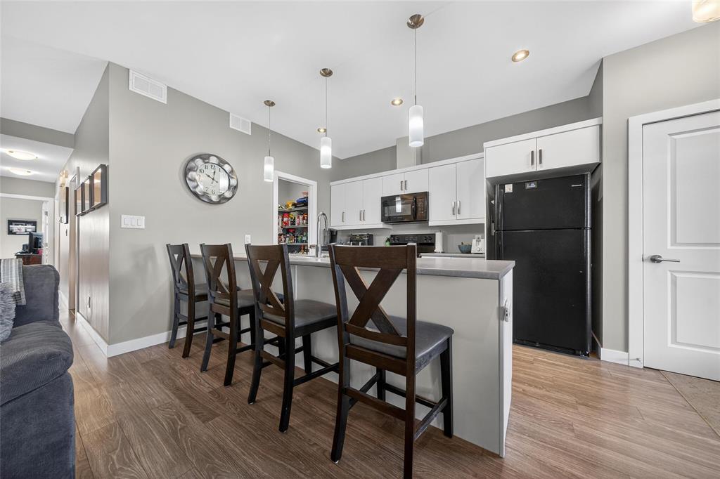Stunning main floor unit offers 1,012 sqft. of well-designed living space featuring 2 bedrooms, 2 full bathrooms, 2 private decks, an outdoor parking stall, plus a single garage, an exceptional combination rarely found in condo living. The bright, open-concept layout welcomes you with a spacious entry and large closet, leading into a stunning, bright kitchen, walk-in pantry, and a generous island with seating, perfect for every day living. The living and dining area is warm and inviting, an ideal space to relax and unwind. Down the hall, you’ll find a 4-piece bathroom, a spacious laundry room, and two generous sized bedrooms, both featuring large walk-in closets. The primary bedroom includes a full 4 piece ensuite and direct access to a private south-facing deck with peaceful country views. Enjoy the added convenience of your outdoor parking stall and single garage located just steps from your unit, along with a covered deck perfect for BBQ season. Additional features include HRV system, A/C, private entrance, and ample storage throughout. Located just minutes south of Winnipeg in the growing community of Île Des Chênes, offering schools, local amenities, and small-town charm with city convenience.