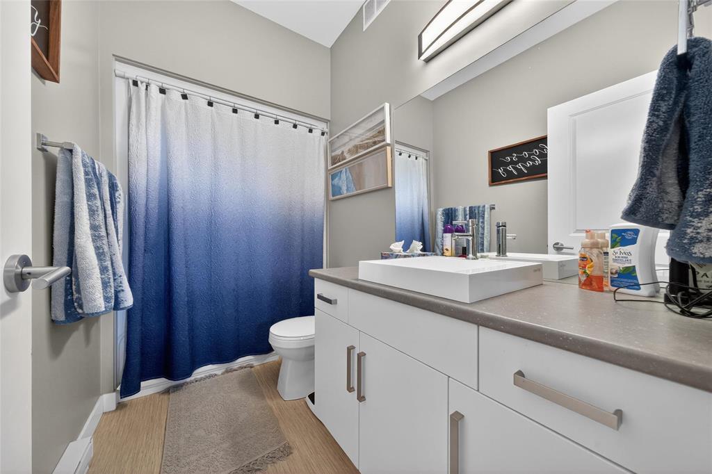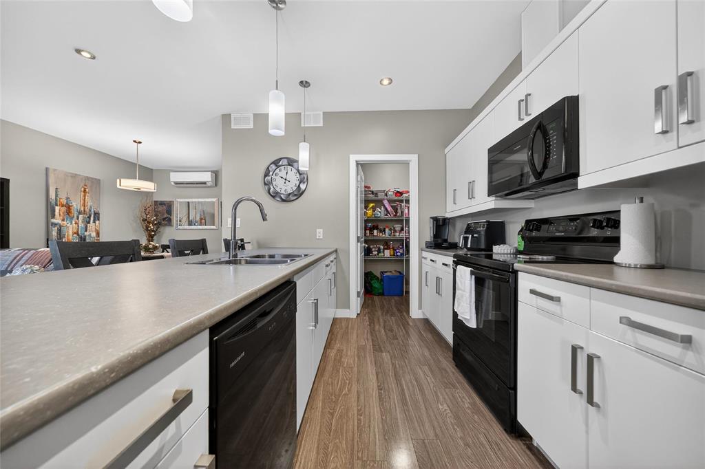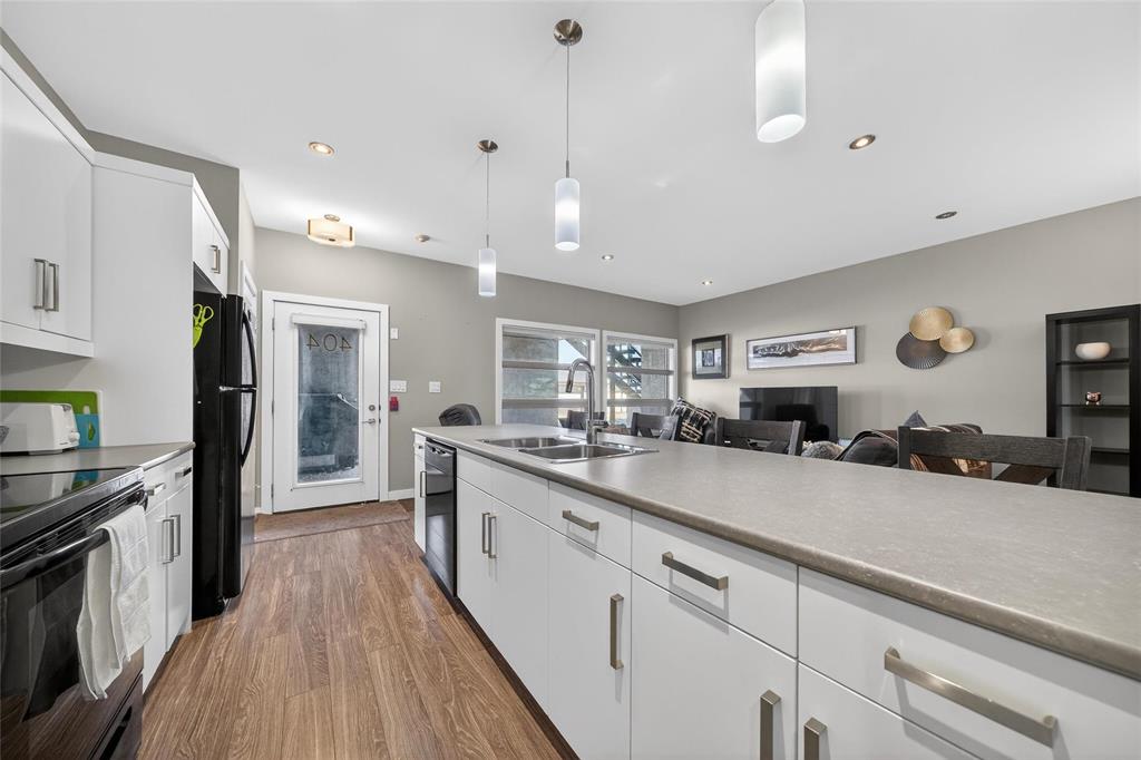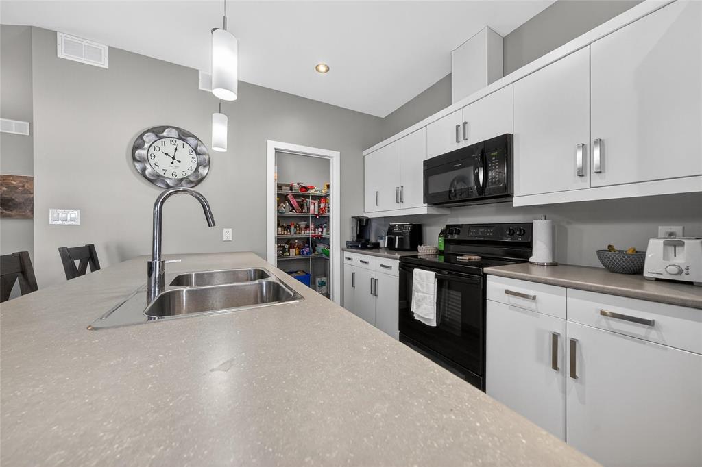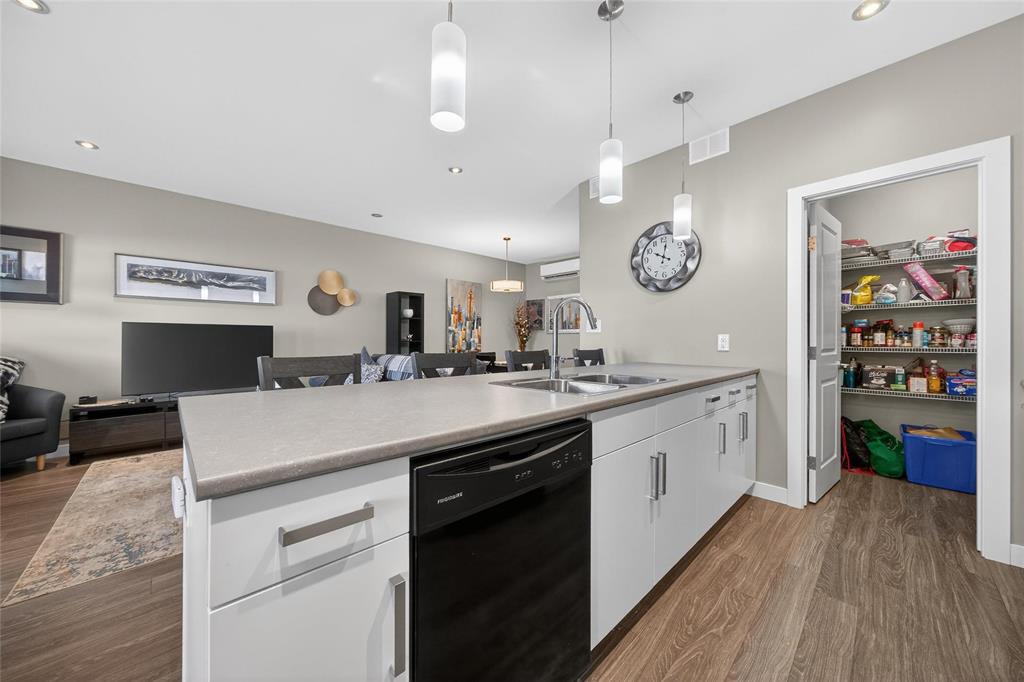 Stunning main floor unit offers 1,012 sqft. of well-designed living space featuring 2 bedrooms, 2 full bathrooms, 2 private decks, an outdoor parking stall, plus a single garage, an exceptional combination rarely found in condo living. The bright, open-concept layout welcomes you with a spacious entry and large closet, leading into a stunning, bright kitchen, walk-in pantry, and a generous island with seating, perfect for every day living. The living and dining area is warm and inviting, an ideal space to relax and unwind. Down the hall, you’ll find a 4-piece bathroom, a spacious laundry room, and two generous sized bedrooms, both featuring large walk-in closets. The primary bedroom includes a full 4 piece ensuite and direct access to a private south-facing deck with peaceful country views. Enjoy the added convenience of your outdoor parking stall and single garage located just steps from your unit, along with a covered deck perfect for BBQ season. Additional features include HRV system, A/C, private entrance, and ample storage throughout. Located just minutes south of Winnipeg in the growing community of Île Des Chênes, offering schools, local amenities, and small-town charm with city convenience.