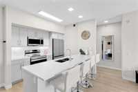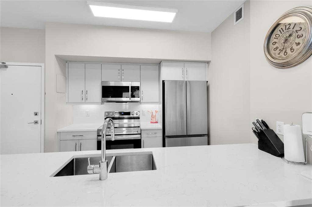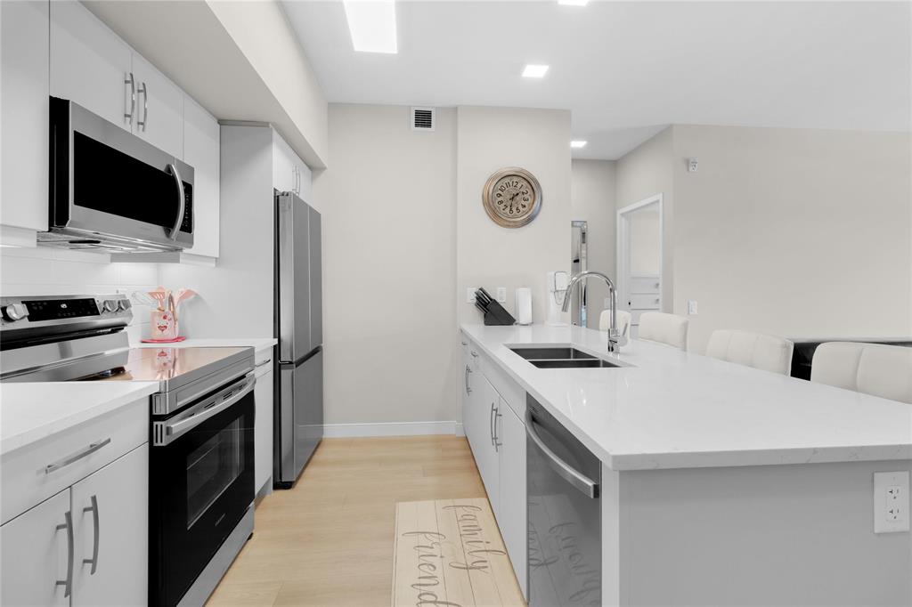 Are you looking for a fantastic 2 bedroom suite in a concrete constructed building with indoor heated parking? You have found your new home at Grand Pacific Gardens! Open house every Thursday 5-7pm, Saturday 12-2pm or by private viewing. This beautiful condo features quartz counter tops, soft-close cabinets, under-cabinet lighting, 4 kitchen stainless steel appliances, plus a stacked washer/dryer in the in-suite laundry. Luxury vinyl plank flooring throughout and your 6 ft patio door opens up to your large sunny south facing covered balcony. The indoor parking stall is one of the largest so your big truck is ok. The complex is pet friendly for 2 dogs or cats and has a dog run located in the parking lot, and indoor dog wash with elevated sink and dryer so Fido will always have that dog salon look. The fitness room includes machines and weights and the common room can be booked for private events. Located in The Refinery District, Winnipeg's newest urban living area it is a short walk to a Rapid Transit Station, or Goodlife Fitness, or a short bike ride to the University of Manitoba, or the Bomber games at Princess Auto Stadium, and a short drive to IKEA, The Outlet Mall and groceries.