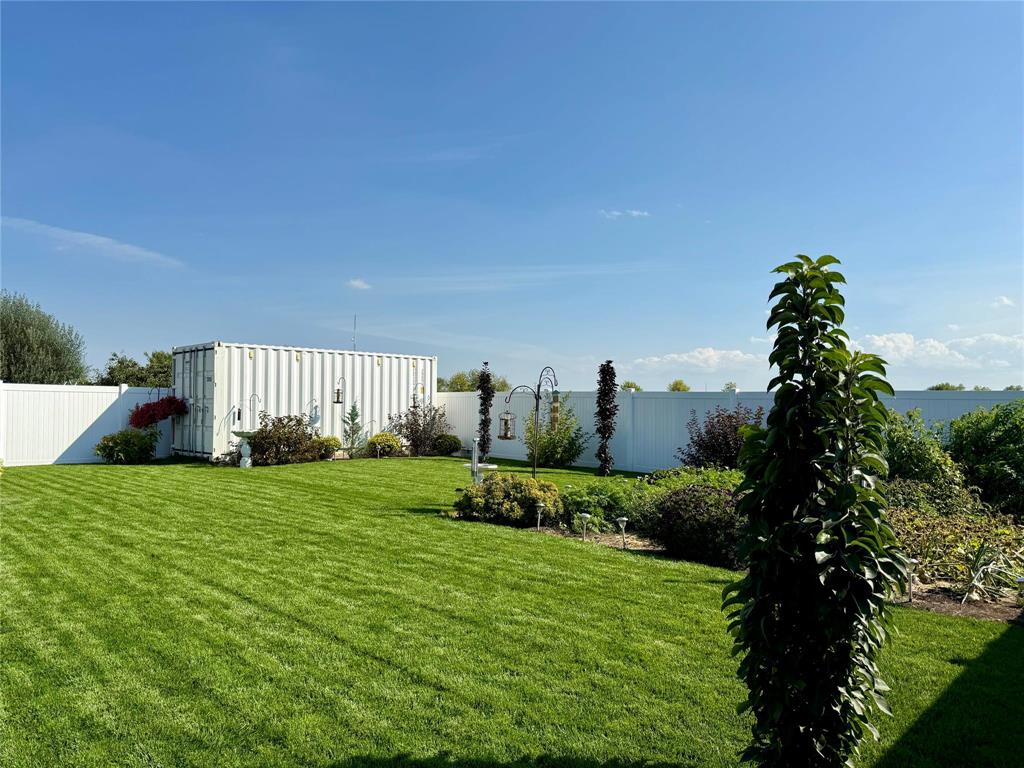 Built in 2023, this stunning bungalow is the perfect retirement home with no stairs and full wheelchair accessibility. Featuring two spacious bedrooms, including a primary suite with ensuite, two bathrooms, and convenient main floor laundry, the home is designed for comfort and ease. The double attached garage is heated, insulated, and equipped with an HRV, matching the home’s modern mechanical systems which include a boiler, HRV, water softener, and RO system. Inside, the home is beautifully finished with thoughtful details throughout. Outside, the property shines with a fully fenced and established yard, lush grass that feels like a golf course, and a large C-can for additional storage. With its privacy, safety, and move-in ready appeal, this home is truly a must-see for anyone considering the benefits of town living.