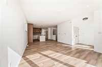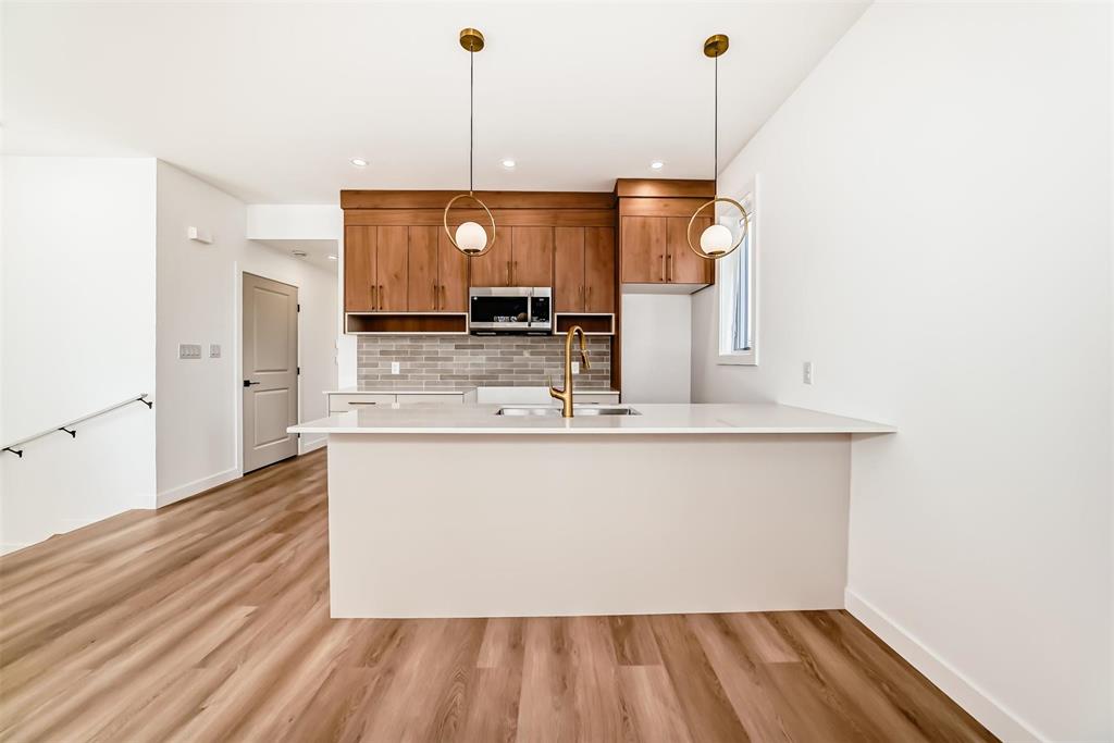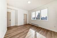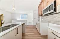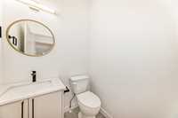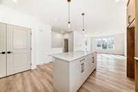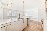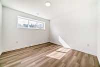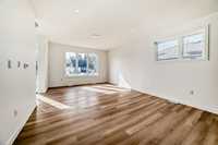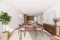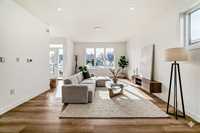The main floor of this rare, oversized infill with an upper-level secondary suite features a bright, open-concept layout with expansive windows, anchored by a designer kitchen with two-tone cabinetry, quartz countertops, ceiling-height cabinets, and gold fixtures. A standout is the flex room just off the kitchen, ideal for a home office, playroom, or added living space, plus a main floor washroom.