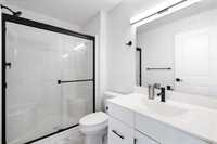 Enjoy built-in ceiling surround sound speakers that enhance your living experience, adding a touch of luxury and convenience. Quartz surfaces continue throughout the home, creating a cohesive and upscale feel.