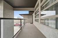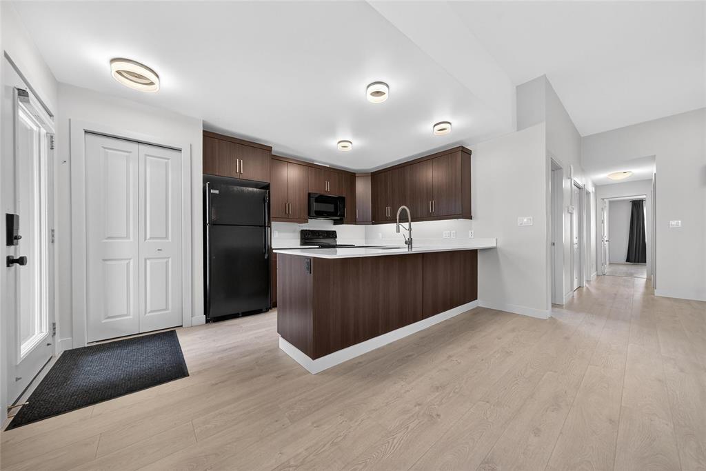 Welcome to easy, elevated living in this beautifully designed second-floor condo offering the perfect blend of lifestyle, layout, and location. This bright and functional unit features 2 spacious bedrooms, both with walk-in closets, providing ample storage and everyday convenience. The open-concept layout is ideal for modern living, seamlessly connecting the living, dining, and kitchen spaces, perfect for both relaxing and entertaining. The large kitchen is a standout, complete with quartz countertops, abundant cabinetry, and plenty of prep space for hosting or daily living. The updated 4-piece bathroom adds a fresh, modern touch. Enjoy the rare bonus of two private balconies, one capturing peaceful morning sun, and the other off the primary suite offering stunning sunset views, allowing you to enjoy the outdoors at any time of day. In-suite laundry adds to the ease of living, as well as 2 parking stalls and recent updates include quartz countertops, and new flooring (2026) provide added value. Located in a desirable area close to everyday amenities, this condo offers a low-maintenance lifestyle without compromising comfort or style.