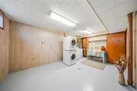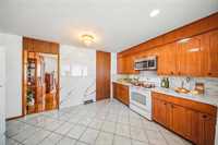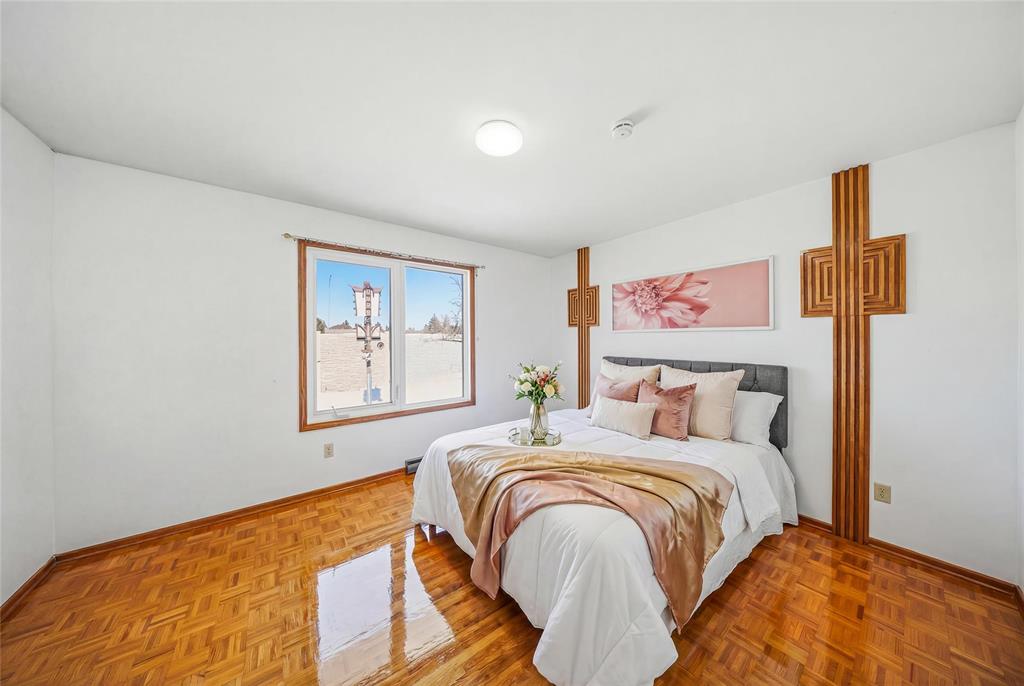 Ss, 12/04. Otp 18/04 6pm. Custom-built character bungalow on a peaceful, mature bay in North Kildonan. Around 1,700 sq ft main floor with 60 ft wide frontage, fully finished basement around 1700 sq ft of livable space. Oversized insulated double attached garage. Fully heated and insulated workshop out back — nearly 350 sq ft — new vinyl flooring, 240V outlet, can be ideal for a studio, gym, or hobby space. Fenced backyard with mature landscaping and fruit trees. Upgraded throughout: feature accent walls, polished hardwood floors, permitted potlights, new fixtures, fresh paint, new kitchen backsplash. Three full bathrooms. Master suite with walk-in closet, private office with sliding door, and renovated ensuite with modern standing shower. New triple-pane windows. Newer shingles. Central air. Central vacuum. Double laundry. Basement has 8 wide windows — ideal for additional bedrooms or rec space. Original oak wood furniture included as shown. Stone exterior with oak wood walls — character that can't be replicated.