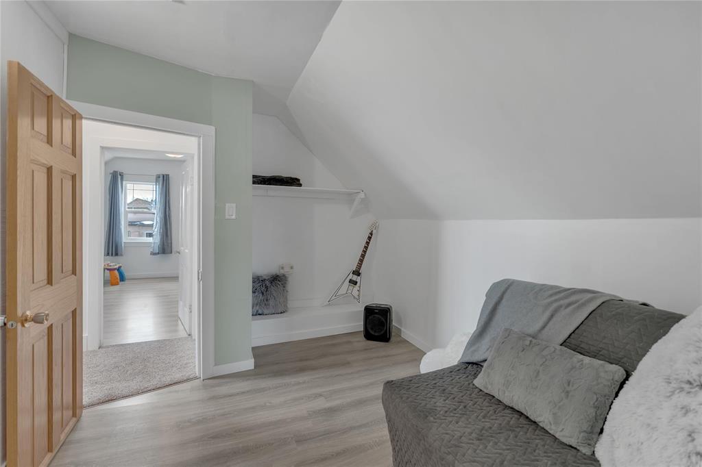 Great affordable home on a large lot! This updated 1¾ storey offers 1,380 sq ft with 2 bedrooms, 1 bath (As a bonus, primary bedroom includes a roughed-in ensuite bathroom—ready for your final touch.) plus a den—perfect for a home office or guest room. Enjoy a spacious eat-in kitchen with new appliances (excluding fridge & microwave) and an open concept living/dining area with updated flooring and windows. The partially finished basement provides extra space for storage or a gym. Outside features a beautifully landscaped, fully fenced yard—ideal for relaxing or entertaining—plus an oversized, insulated double detached garage. Conveniently located close to public transportation, schools, and all amenities. Numerous upgrades (2025-2026) throughout including updated bathroom and plumbing, newer flooring, drywall and baseboards, upgraded electrical panel, furnace, A/C, hot water tank, central vac, fresh paint, and more. Fantastic opportunity for first-time buyers, families, or investors. A MUST SEE!