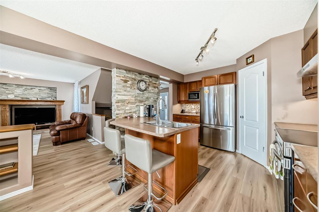 Main level features a bright & inviting LR filled with natural light & a fireplace. Eat-in kitchen offers an island & a large pantry, providing plenty of storage. Adjacent to the kitchen, dining area includes a large patio door leading to spacious deck—perfect for entertaining family and friends. Fully fenced, professionally landscaped backyard adds both privacy and charm.