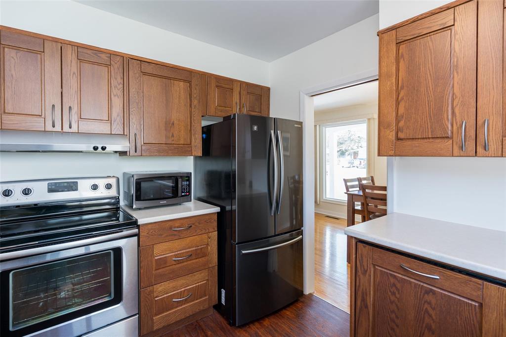 Showings start April 15. Offers April 21. Wow! This ranch-style bungalow has been meticulously cared for by the same owner for 27 years. A large foyer leads you into LR/DR featuring original hardwood flooring which is in amazing condition. The main floor features 3 bedrooms (also HWFs under plank flooring) an updated main bath & primary bedroom having a 3-pce ensuite & walk-in closet. The eat-in kitchen has plenty of storage, pantry & stainless steel appliances. Basement has 2 large rec room areas, wood burning fireplace & large office currently being used as a guest bedroom. The front & back yards are beautifully landscaped & the south facing back yard is fully fenced and has raspberry bushes & a firepit. Bonus natural gas BBQ hook-up! The double attached garage provides convenient access directly into the home. Upgrades include: HWT 2024, Hi-E furnace 2017, Tri-pane windows 2017, sump pump 2016, kitchen and bath reno 2015, R50 attic insulation (R50) 2011, shingles 2010. Surrounded by all levels of schools, UofM, Princess Auto Stadium and transit. Fantastic home for the growing family.