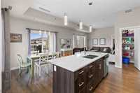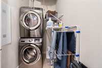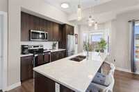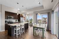 Open house Sun April 19 12-2. Offers presented to owner on Mon April 20. Discover this exceptional Top Floor Penthouse Corner suite that offers breathtaking views and luxurious living. Perfectly situated with south & west exposure, this stunning 2-bed, 2-bath unit features soaring 10-foot ceilings and expansive wrap-around windows that flood the space with natural light, and wrap-around balcony perfect for enjoying sunsets, sunshine and BarBQs. Open concept design w luxury vinyl plank flooring throughout. Your gourmet kitchen boasts quartz counters, stainless steel appliances, a pantry and room to gather with friends for appies around the large island. Relax & unwind in your large main bedroom, big enough for a king bed & features a walk-in closet & ensuite with walk-in shower. The laundry room includes stacked washer/dryer and is located separately ensuring quiet operation away from living areas. Storage locker incl & underground parking stall. The center clubhouse is the hub of this community where they organize happy hour, paint nights and more in the large common room which can be booked for private events, and with a billiard/shuffleboard lounge and amazing gym on the 2nd floor, you will love it!