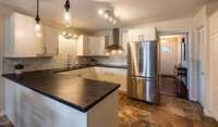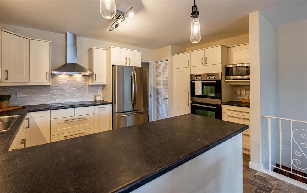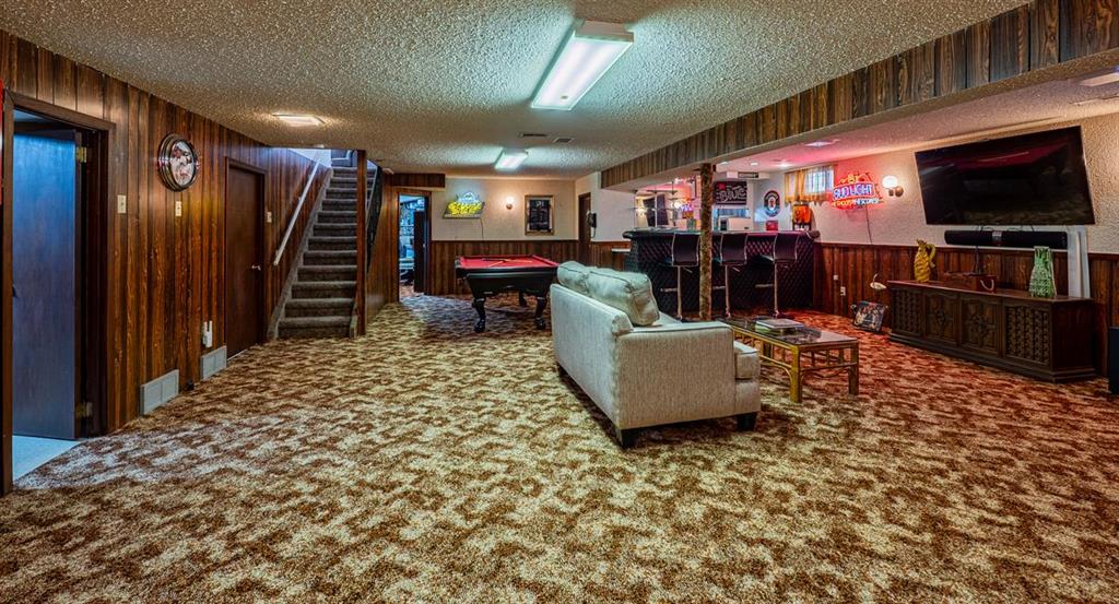 Offers on April 22nd. Welcome to this sprawling bungalow offering just under 1,700 sq ft of well-designed living space, ideally located on a quiet street directly across from a school and playground. Step inside to a bright formal living and dining room featuring beautiful hardwood floors - perfect for entertaining. The fully updated eat-in kitchen is a standout, complete with stainless steel appliances, including double ovens, and plenty of space for everyday living. Just off the kitchen, the cozy family room offers a wood-burning fireplace and built-in storage. On the south side of the home are three main floor bedrooms, including the primary with its own 3-piece en-suite, along with a 4-piece bathroom. Downstairs, step into a super cool retro-inspired basement! The massive rec room features a wet bar and endless space to host family and friends. There’s also a fourth bedroom with its own 3-piece en-suite, plus a 2-piece bathroom, three storage rooms, and a large laundry/utility area. Thoughtfully updated throughout, this home blends modern touches with retro charm! Outside, enjoy the expansive yard and oversized double garage. This is the forever home you’ve been waiting for! Check out the video.