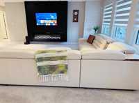 • Large living room with TV + cozy fireplace and 7 seater leather recliner