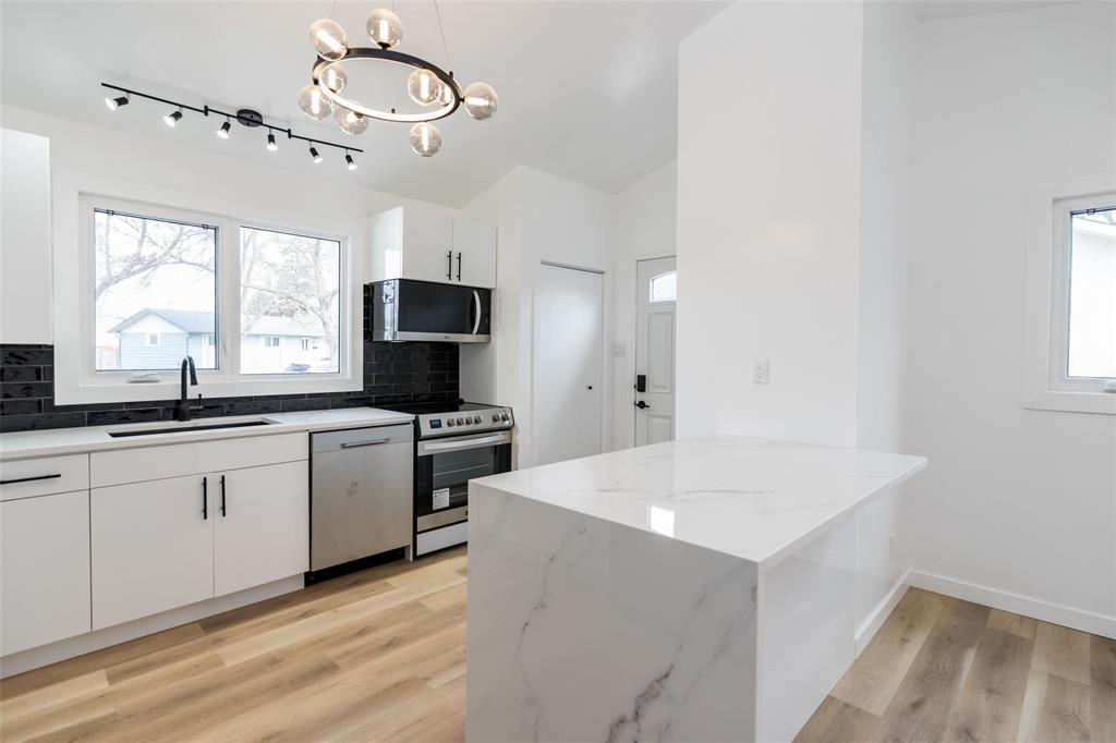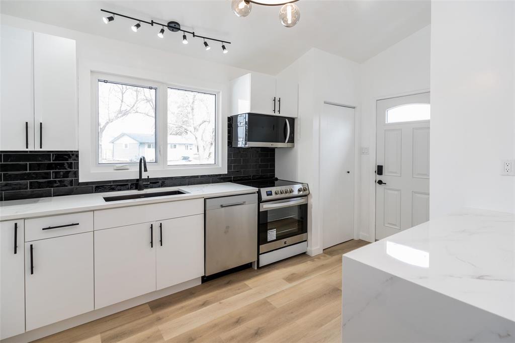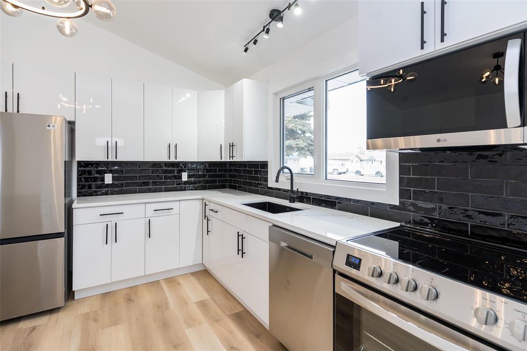 **OPEN HOUSE APRIL 18 & 19 SAT & SUN 1:00-3:00PM!** Offers presented April 24. Welcome to Westdale! STUNNING, turn-key 1608 sq ft, 4 bedroom, 2 full bathroom four -level split in a GREAT location! This exquisite family home has too much to offer! BRAND NEW kitchen with new soft close cabinets, sink, quartz countertops, island with quartz waterfall, new induction stove, refrigerator, dishwasher + more! Main floor also offers a formal dining and living area! Upstairs, you will find a brand new glass railing, updated 4 piece bathroom, primary bedroom and a secondary bedroom with access to the deck! The lower levels provides another 2 good-sized bedrooms, new 3 piece bathroom with tiled shower and a huge fully finished rec room! Brand new windows throughout the home, light fixtures and new washer and dryer! Shingles (2024), aluminum fascia, soffits. This property is fully fenced, landscaped with a deck + landing, includes a storage shed and single attached garage! Located in a family friendly neighborhood within walking distance to schools, shopping, public transportation and more! Don't miss out! Book your viewing today!
