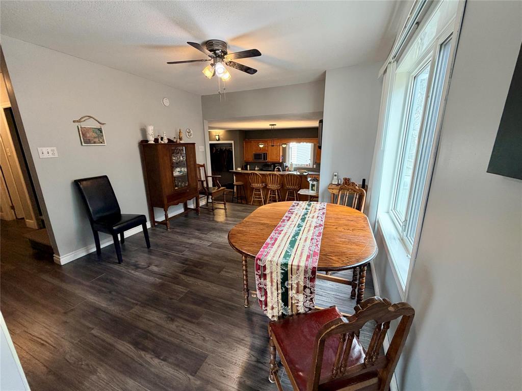 Welcome to this well-maintained 1.5 storey home in Elm Creek, just 45 minutes from Winnipeg. Offering 2,046sqft, this home features 3 bedrooms with potential for up to 5, ideal for growing families or those needing extra space. The main floor offers a bright living room, 4 piece bathroom, functional kitchen with ample cabinetry and heated floor, a dining area filled with natural light, plus a spacious primary bedroom with walk-in closet. Upstairs you’ll find a large flex space perfect for a family room or office, along with two generously sized bedrooms. The partially finished basement adds extra living space, a 3-piece bath, and rooms that could be converted to bedrooms (windows may not meet egress). Situated on a fully fenced 50 x 125 lot, enjoy a private backyard and west-facing covered deck. The double detached garage with in-floor heat capability is ideal for storage or a workshop. Updates include shingles (18) and furnace & A/C (25) along with many other improvements. Located in a great community with K-12 school and new daycare, this home offers excellent value, space, and potential.
