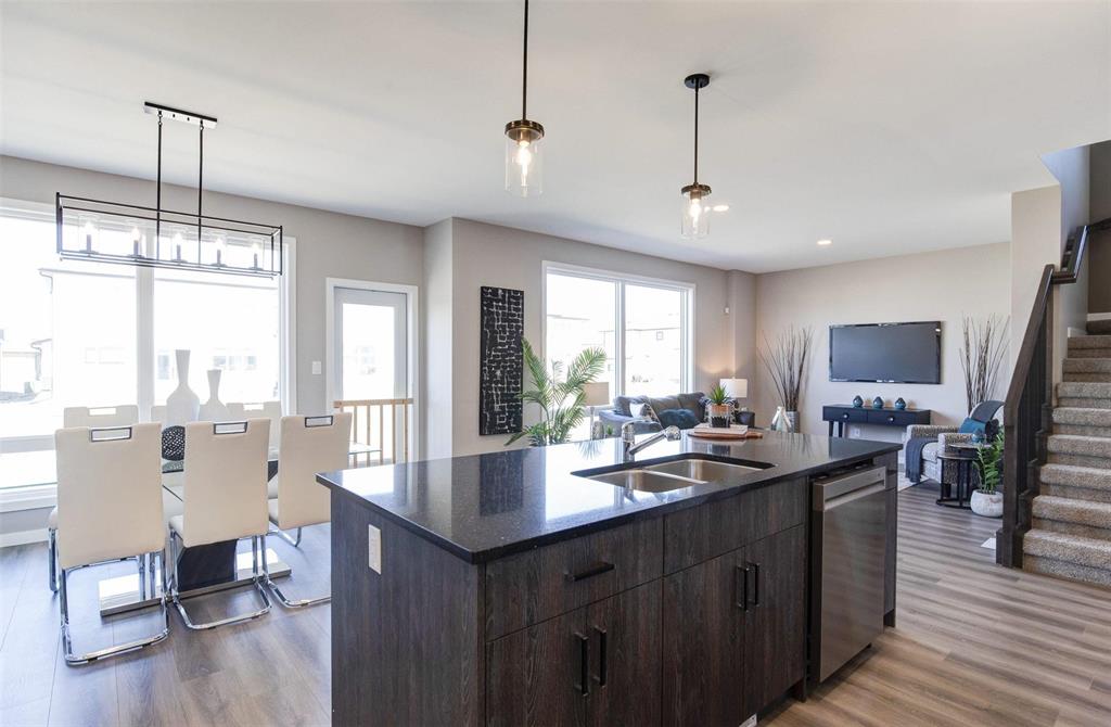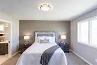 Welcome to the stunning Randall Homes “Bison” model in the desirable Parkview Pointe community! This thoughtfully designed 1,849 sq ft features 4 beds and 3 full baths, along with a bright open-concept layout, making it perfect for families and entertaining. The main floor boasts 9’ ceilings, a stylish great room with pot lights, a kitchen complete with quartz countertops, tiled backsplash, upgraded cabinetry, and pot & pan drawers. A main floor bedroom with a full bath adds extra convenience for guests or extended family. Upstairs, the spacious primary suite offers a luxurious ensuite with an oversized vanity, quartz counters, and a glass-door standing shower. Two additional bedrooms, a full bathroom, a versatile loft, and a convenient second-floor laundry room complete the upper level. highlights laminate flooring, designer lighting, a 200 amp panel, triple pane windows and modern finishes throughout. Built on a pile foundation, the home also features a concrete driveway and sidewalk, along with a 21’ x 22’ garage with bonus workshop space. The exterior showcases a beautiful blend of stucco, siding, and cultured stone, complemented by sleek black windows for added curb appeal. Possession Fall 2026.