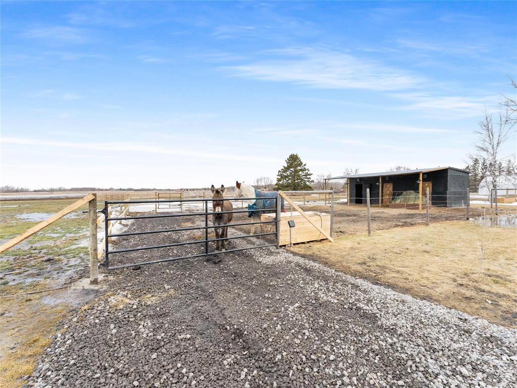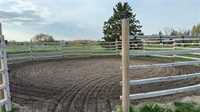 Showings start April 16, offers anytime after April 21- evening. Just when you thought an acreage for you and your animals was out of reach..Here it is! Your cute and cozy home set up for you and your 4 legged critters with tons of updates - and the most beautiful prairie sunsets you could ask for. 2 bdrms, 1- 4 pce bath, triple pane updated windows (2023), doors &baseboards (‘23) bathroom (‘23), jet pump and pressure tank (‘25), open concept eat-in kitchen and livingrm with lovely flooring, meticulously maintained, moving outdoors you will find a perfect set up for horses, fenced property, round pen for training, newly planted apple trees, 90 white spruce, 200 poplar to grow with you, 2 stall row barn w/tack room and shelter, 2 storage shelters for hay and toys, fire pit for entertaining friends and a beautiful pond w/waterfall for those summer afternoons of relaxation. Oversized DT/1- insulated with wood stove installed in 2022. Great opportunity to jump into the real estate market to get your acreage to build equity with. This has been a great home and property that has served this family well. Horses are not required for this property, but they sure look lovely grazing as the sun goes down