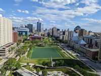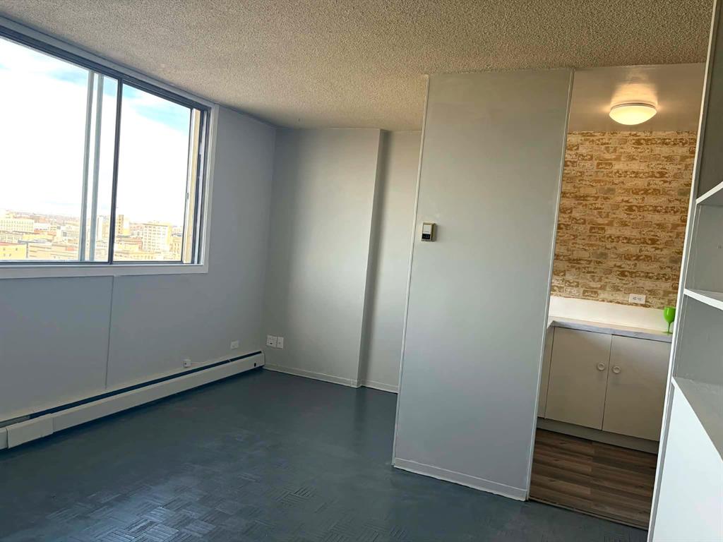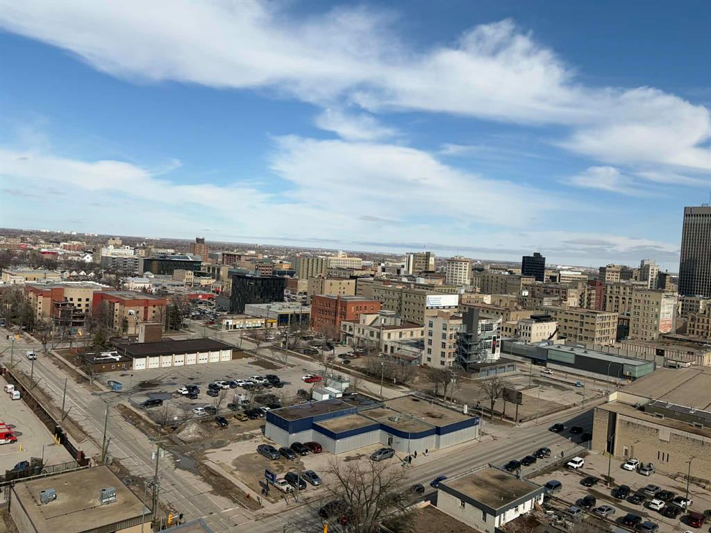 Welcome to Unit 1801 at 411 Cumberland Avenue, offering incredible views of downtown Winnipeg! Perfectly located just steps from the Canada Life Centre, close to Health Sciences Centre, Red River College Polytechnic, University of Winnipeg, shopping, transit and directly across from Central Park. This bright unit offers a smart, functional layout with a spacious living area flowing into the dining space and kitchen, complete with ample cabinetry and storage. A bedroom area and updated 4 pc bath complete the space. Enjoy the convenience of a secure building with 24-hour entry, overnight security, elevators, on-site laundry, a resident lounge and a bookable flex room for gatherings.