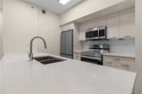 6 Month Free Condo Fee Promotion on now! The show suite is open Thursday 5-7pm & Saturday 12-2pm or by private appointment. Come by to check out these brand-new, concrete-constructed condos in the Refinery District with quick possession. This unit is located on the 5th floor facing east and features a 2-bedroom, 1-bathroom layout with a covered balcony boasting glass railings. Both bedrooms have walk-in c/c, making this ideal for 2 people sharing the condo or someone who needs extra storage. The open-concept main living area has a 6-foot patio door allowing a ton of natural light. The kitchen has quartz countertops, including a large peninsula-style island with breakfast bar & ceramic tiled backsplash & under-cabinet lighting and 4 Stainless Steel appliances are included. In-unit laundry with washer/dryer included. The building is pet-friendly with 2 pets under 55lbs & has a pet wash station on the main floor, plus a dog run outside. There is a common/party room & fitness room, bike storage room & 2 elevators. Great location with everything that you need nearby and a short walk to the Rapid Transit station. Pictures are of a similar unit, but you can see this exact unit when you come by. 95% SOLD!