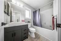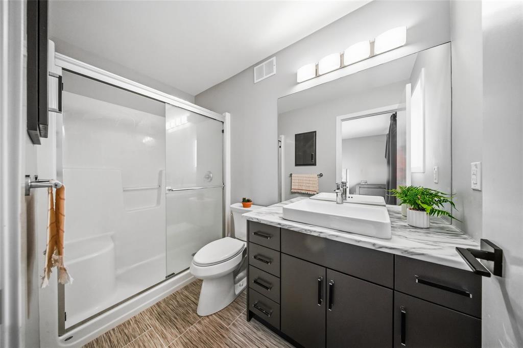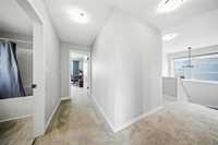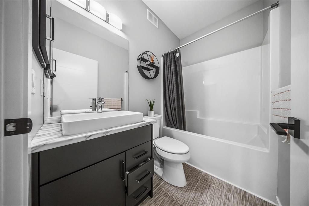 The main floor offers a versatile bedroom and full bath, ideal for guests or a home office. Upstairs: sun-filled loft, spacious primary bedroom with walk-in closet and ensuite (standing shower), plus two more bedrooms, full bath, and upper laundry.