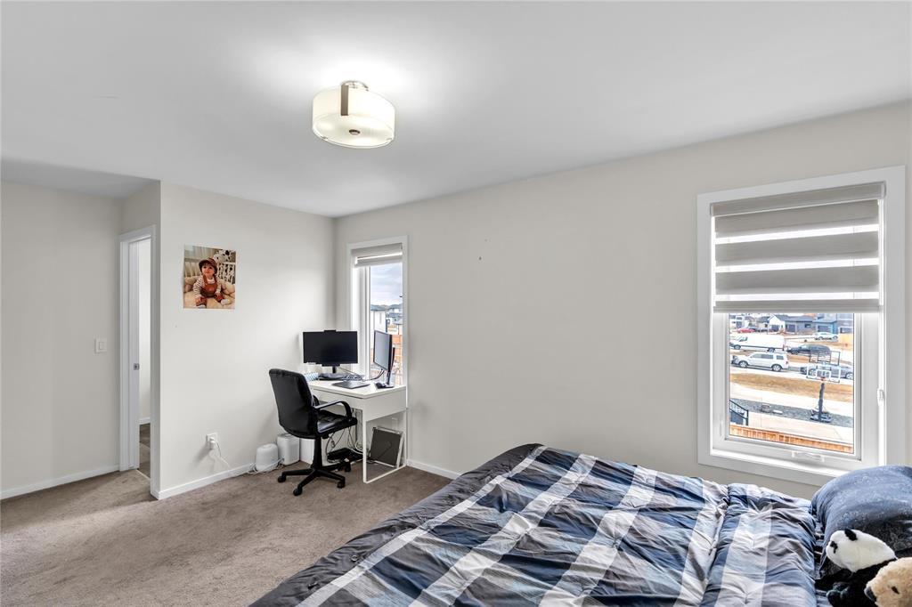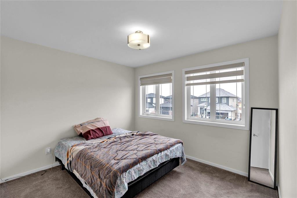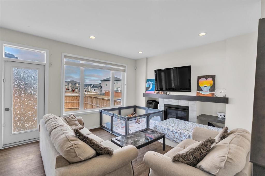SS NOW, OFFER AS RECEIVED. OH April 25th Sat & April 26th Sun From 2PM-4PM. Welcome to this beautifully crafted 2-storey home built in 2020 by the reputable *A&S Builders*, nestled on a desirable corner lot in the sought-after Prairie Pointe community. Offering 1,505 SF of thoughtfully designed living space, this home blends style, function, and comfort. Step into a welcoming foyer complete with a coat closet, convenient garage access, a main floor half bath for guests, and a dedicated laundry area — all designed for effortless everyday living. The heart of the home features an open-concept living, dining, and kitchen layout flooded with natural light from large windows. The chef-inspired kitchen boasts ample cabinetry, a pantry, elegant *Quartz* countertops, and a *Gas-Stove*. Upstairs, the primary retreat offers a spacious walk-in closet and a private 4-piece ensuite. Two additional well-sized bedrooms share a full bath — perfect for family or guests. The full unfinished basement presents endless potential to customize to your vision. Outside, enjoy a fully fenced backyard ideal for summer gatherings and family fun, plus a double attached garage. Book your showings today (all measurements Jogs +/-).