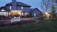 Country living in City limits! Homestead property nestled in the corner of a quiet neighborhood on 1.65 acres, this location is within walking distance to Golf Course and Aquatic Centre! Enter the front door and you will immediately be impressed with the natural light, functional layout and easy entertaining areas. The main floor primary suite has a freshly updated 5pce ensuite with walk in closet. The office is accessible from the primary suite and great room. You will enjoy the wood fireplace during cold winters and the sunroom is a perfect spot to enjoy a good book. The kitchen has built in appliances and features sweeping views of the backyard landscape, breakfast in the back nook or host in your formal dining room. Main floor laundry and 2pce powder room off the garage offer convenience. The grand staircase takes you to the 2nd level complete with rec room, 3 additional bedrooms and 4pce bathroom. The finished basement has a wet bar, 4pce bathroom, family room as well as storage space/workshop area with access to the heated garage. The grounds feature a beach volleyball court, fire pit, large deck area with hot tub and a 12x20 workshop/garden shed with overhead door. A truly rare property!